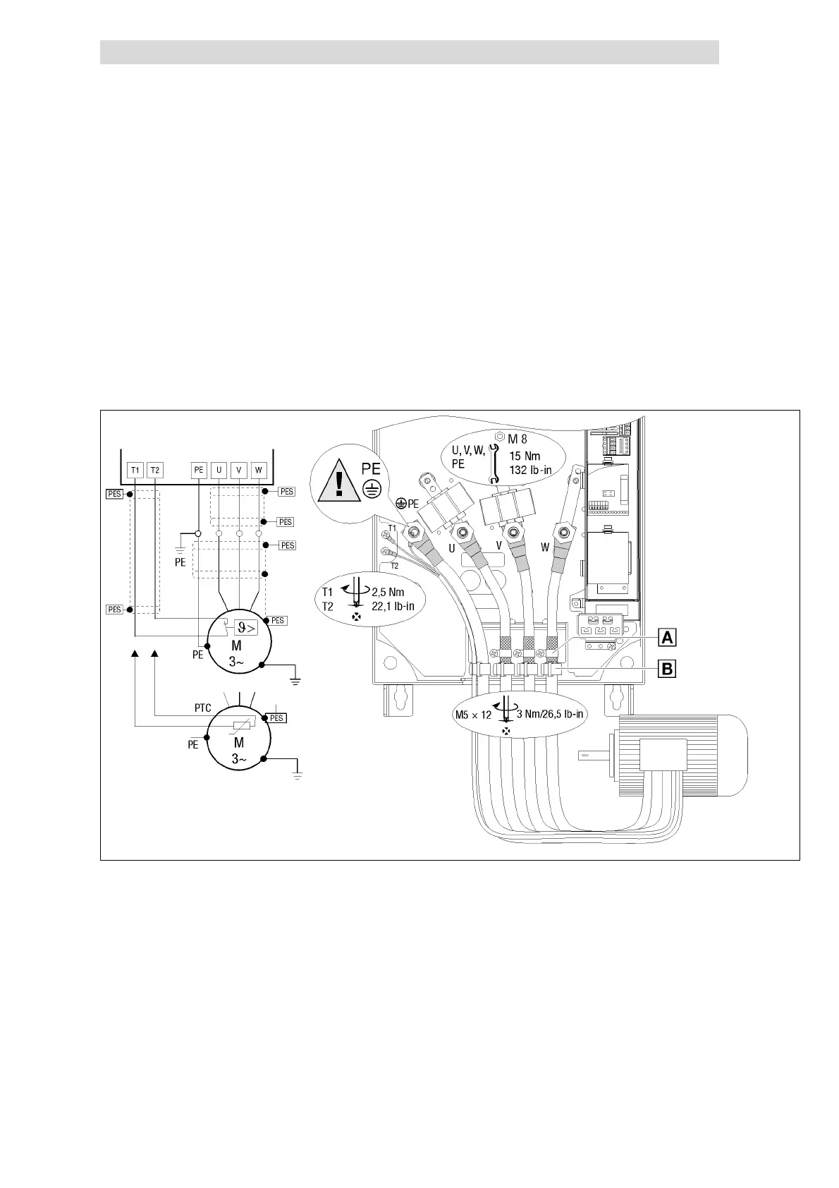 Route a separate cable (shielded) to X2/T1 and X2/T2 for the motor