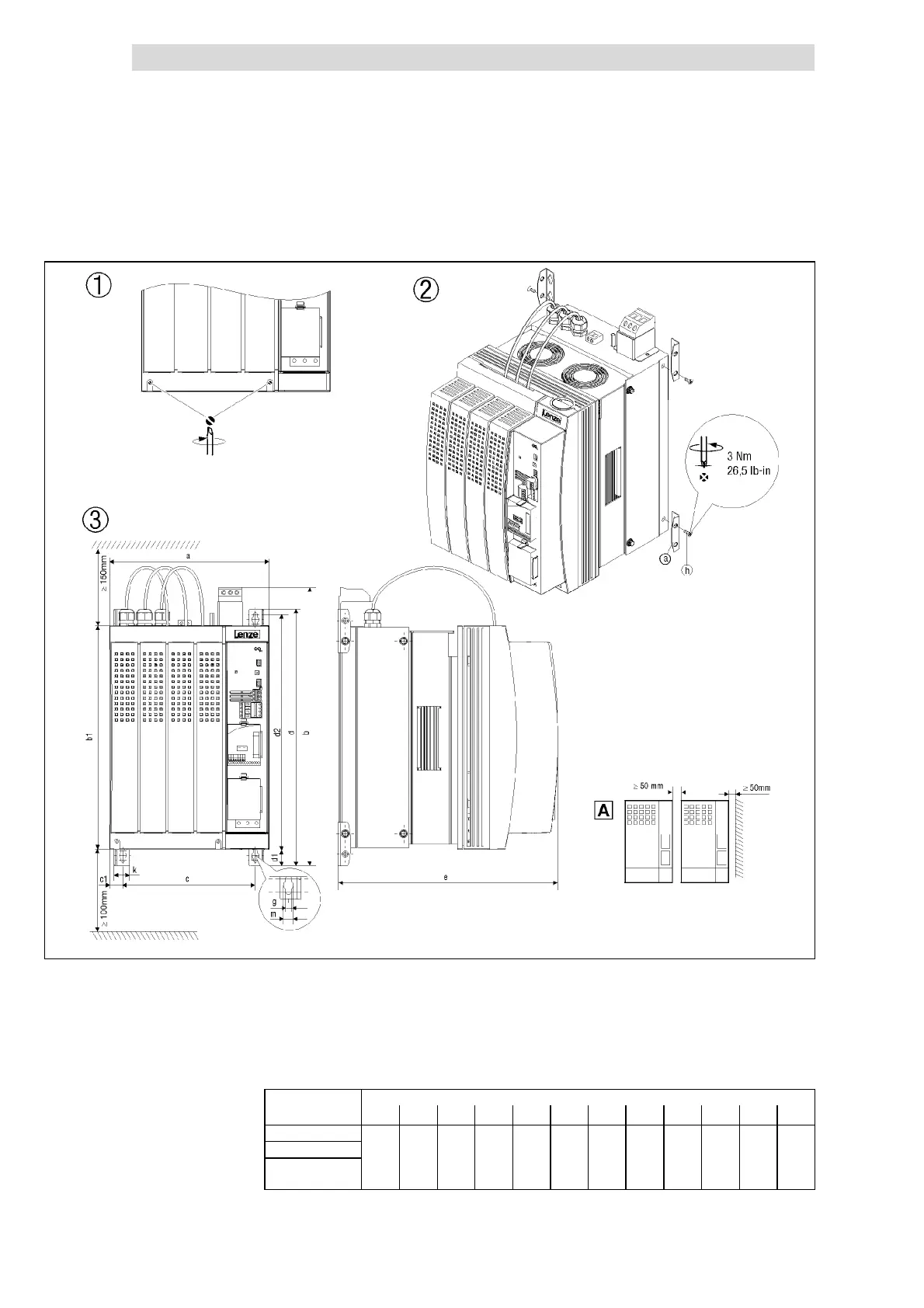 Lenze E82EV551K4C - Fig. 5.5-2 Standard Mounting with Footprint Mains Filter 15; Mounting with Fixing Brackets and Footprint Mains Filter