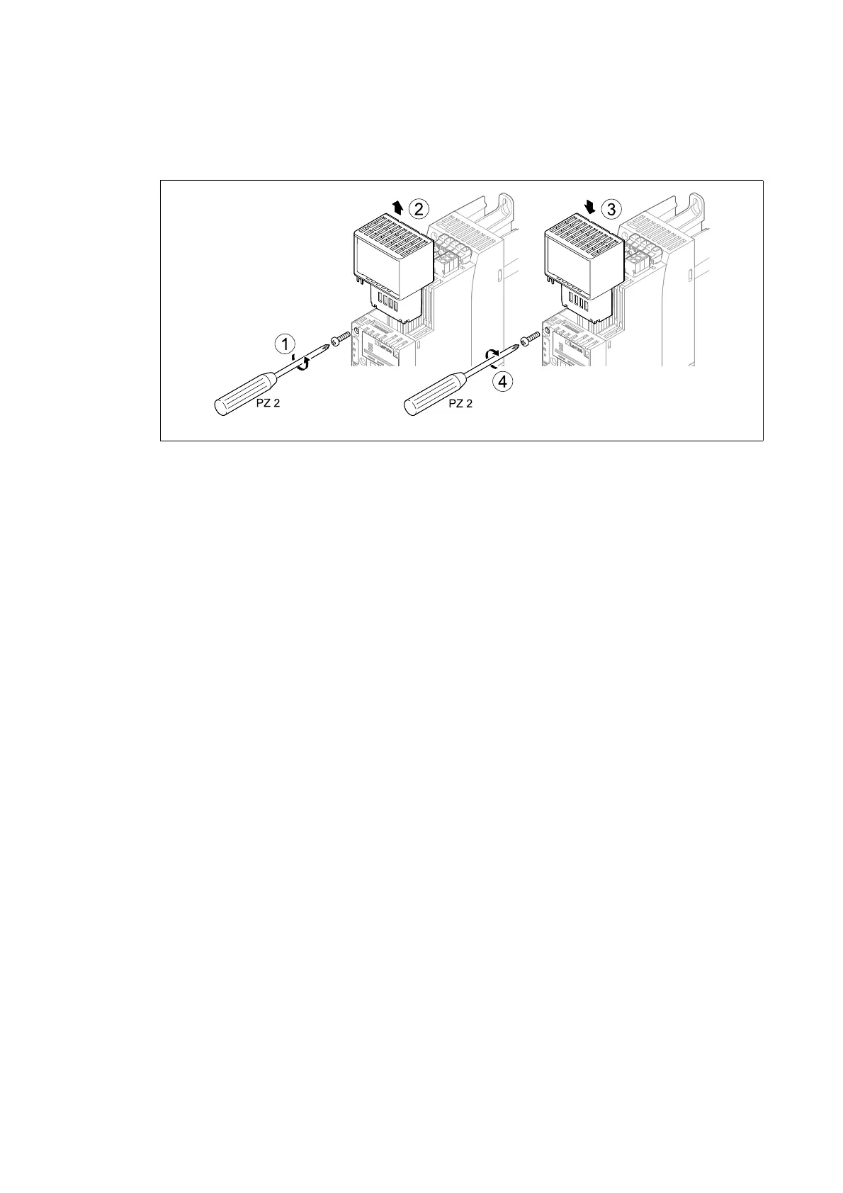 1. Loosen the securing screw for the communication module at the standard device (1).