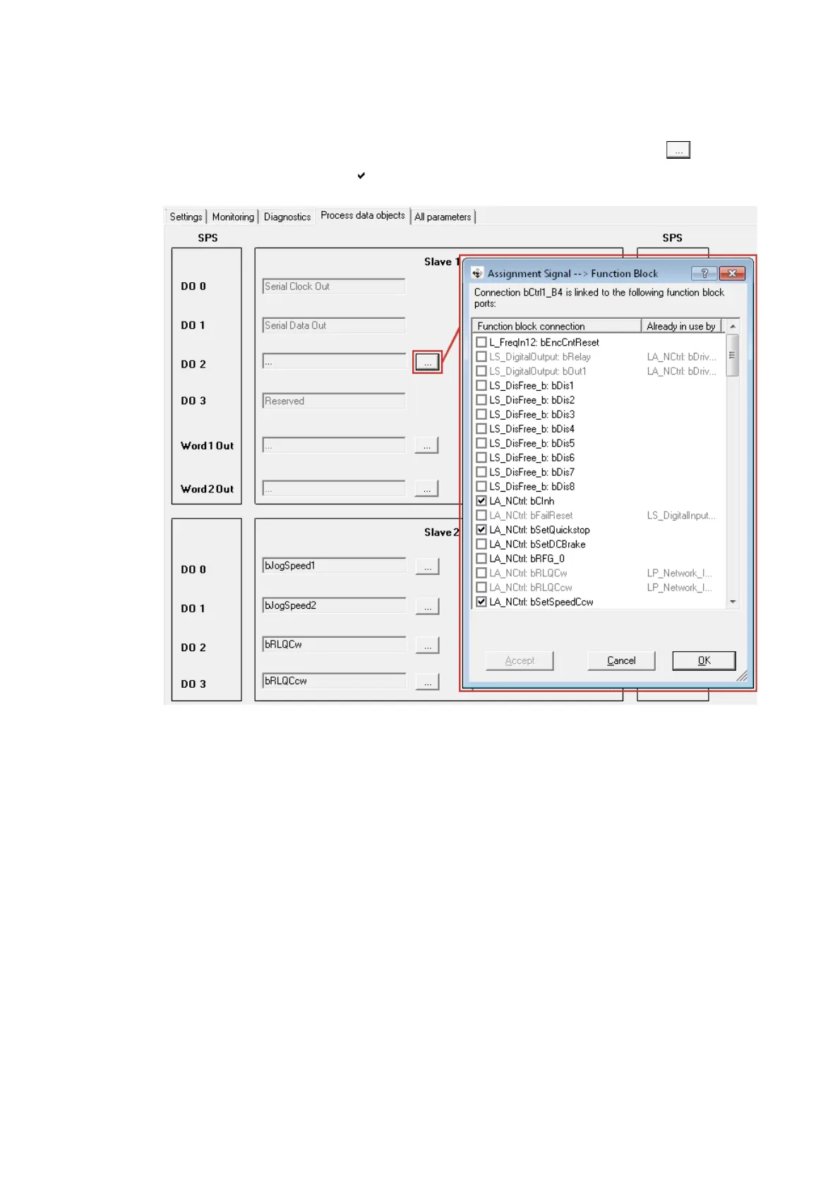 3. Open the "Assignment Signal --> Function Block" dialog window using the buttons.