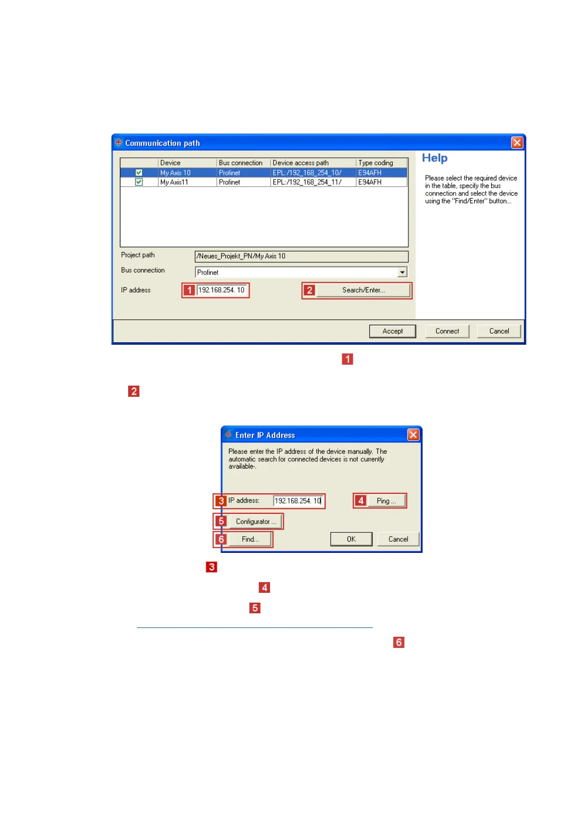 display field. Corresponding settings for this can be made in the dialog window Enter IP address,