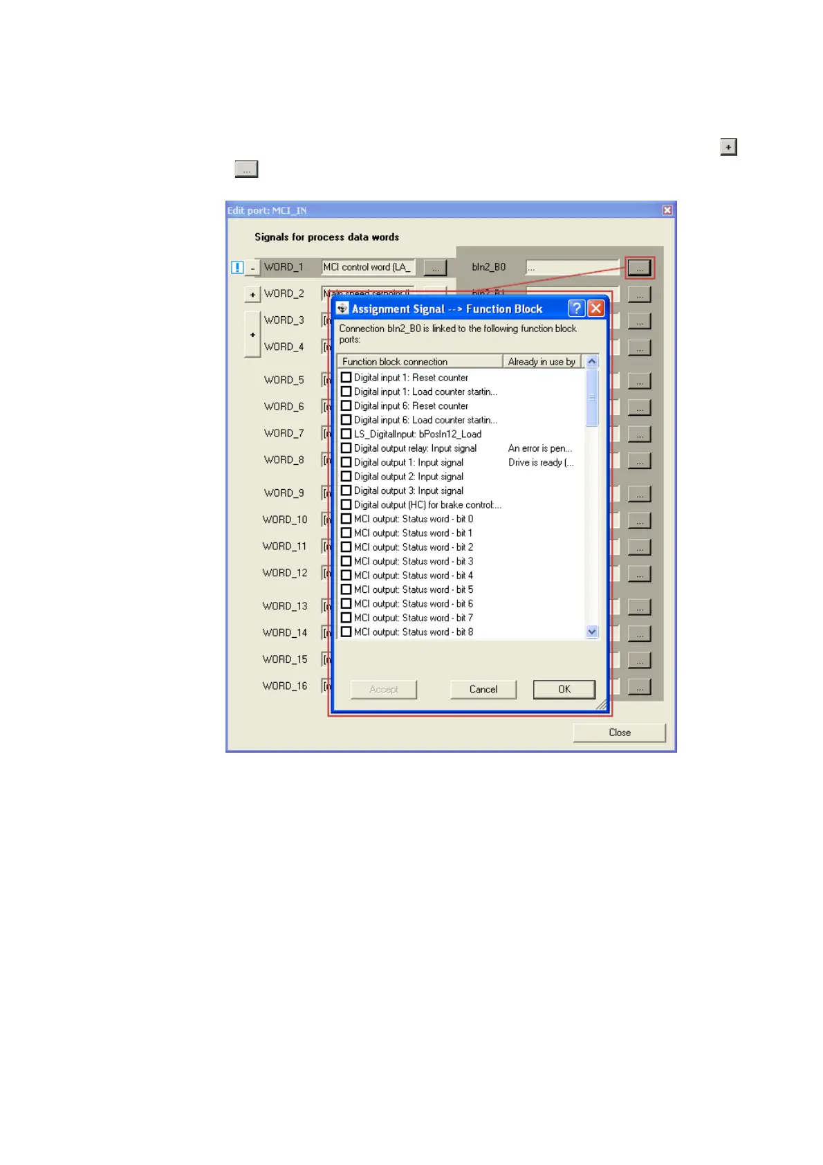 For some process data words, you can also assign signals to the individual bits via the