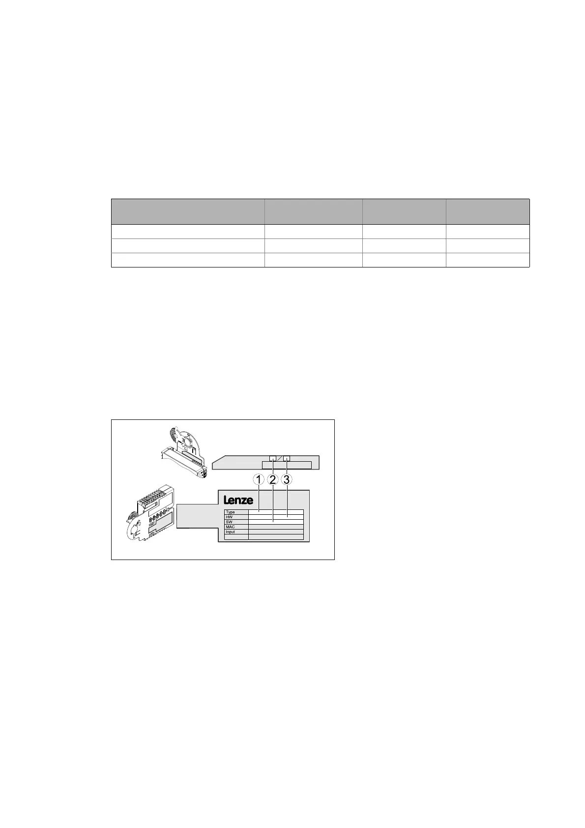 The type designation and hardware and software version of the communication module are