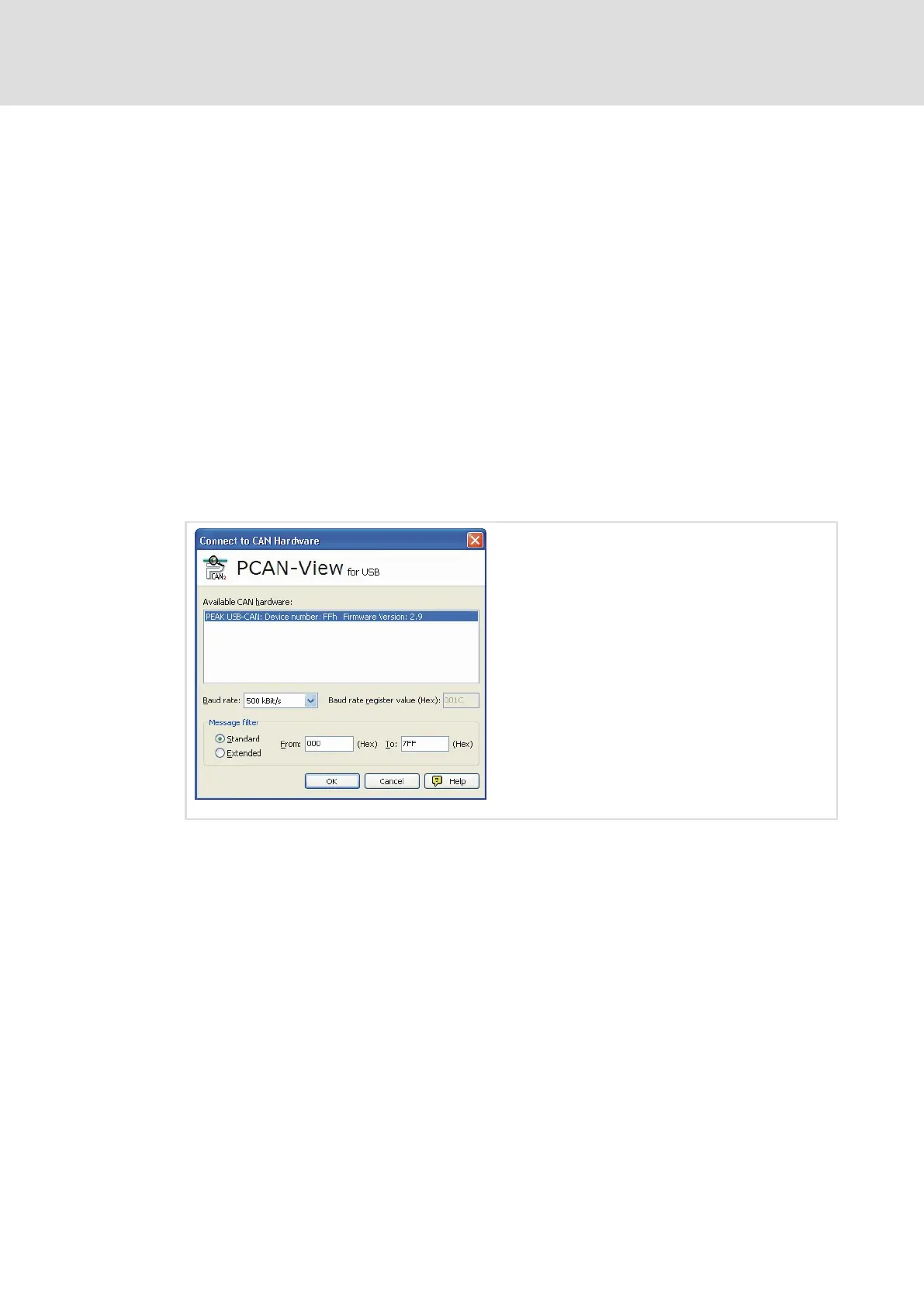 3. Connect PCAN−View with "Connect to CAN Hardware" according to the USB system