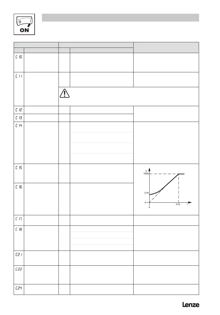 Slip compensation 0.0 0.0 {%} 40.0 Change C21 until the motor speed no