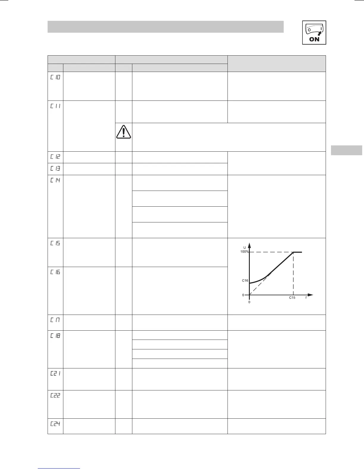Acceleration time 1 5.0 0.0 {s} 999 • C12 = frequency change 0 Hz...C11