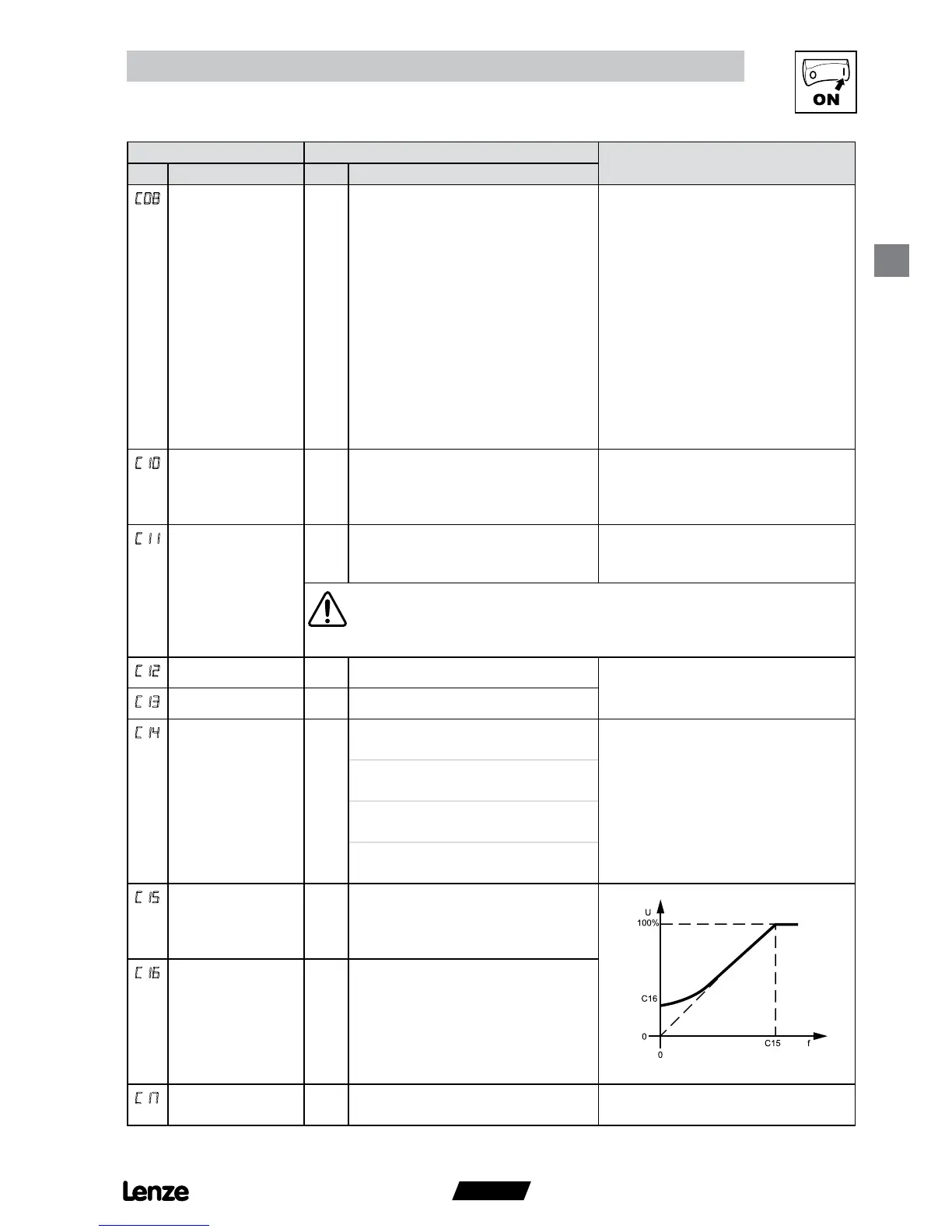 Acceleration time 1 5.0 0.0 {s} 999 • C12 = frequency change 0 Hz...C11