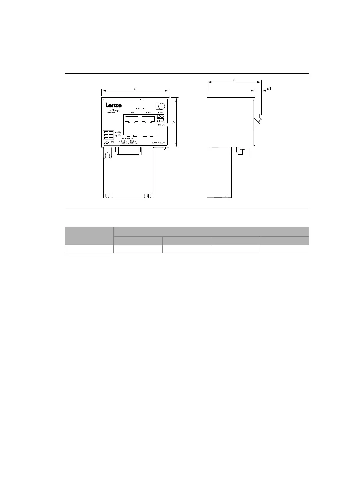 Lenze EtherNet/IP E84AYCEO - Dimensions