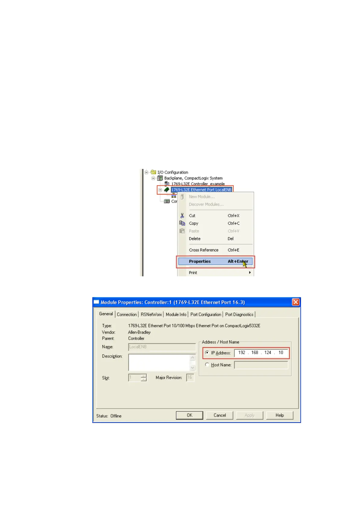6.2.2 Example: IP configuration of the Allen-Bradley 1769-L32E CompactLogix controller