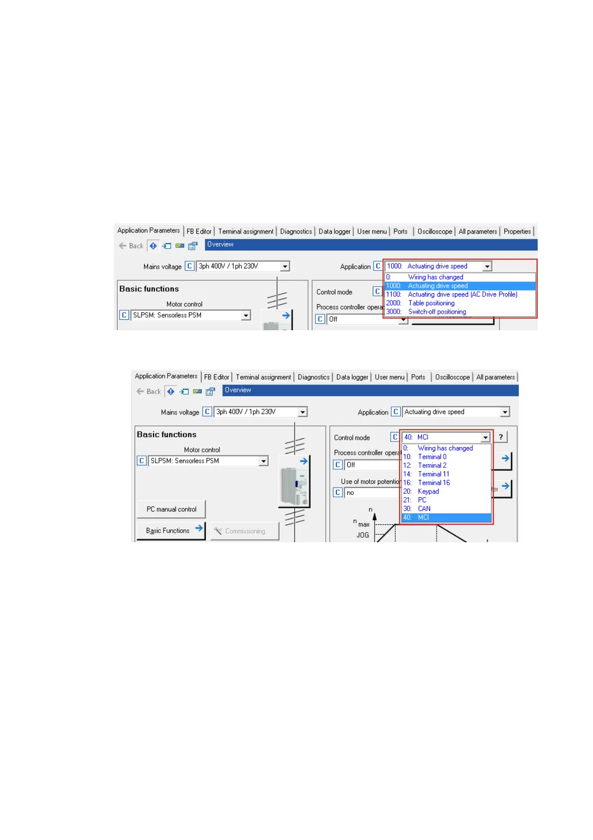 Select "MCI" control mode (C00007 = 40).