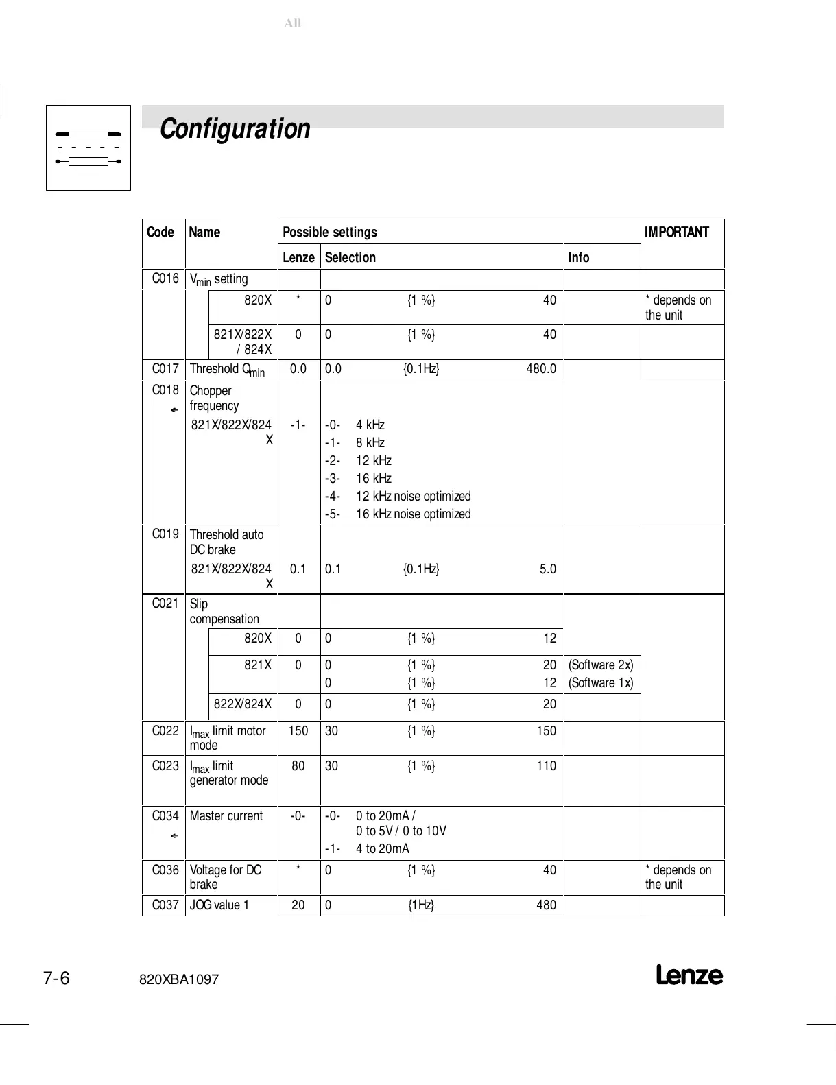 Code IMPORTANTPossible settingsNameCode IMPORTANT