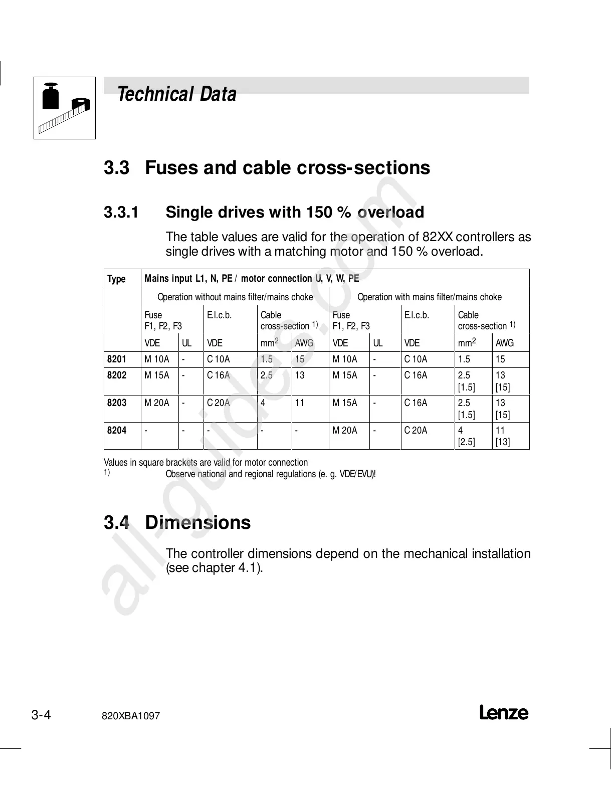 Operation without mains filter/mains choke Operation with mains filter/mains choke