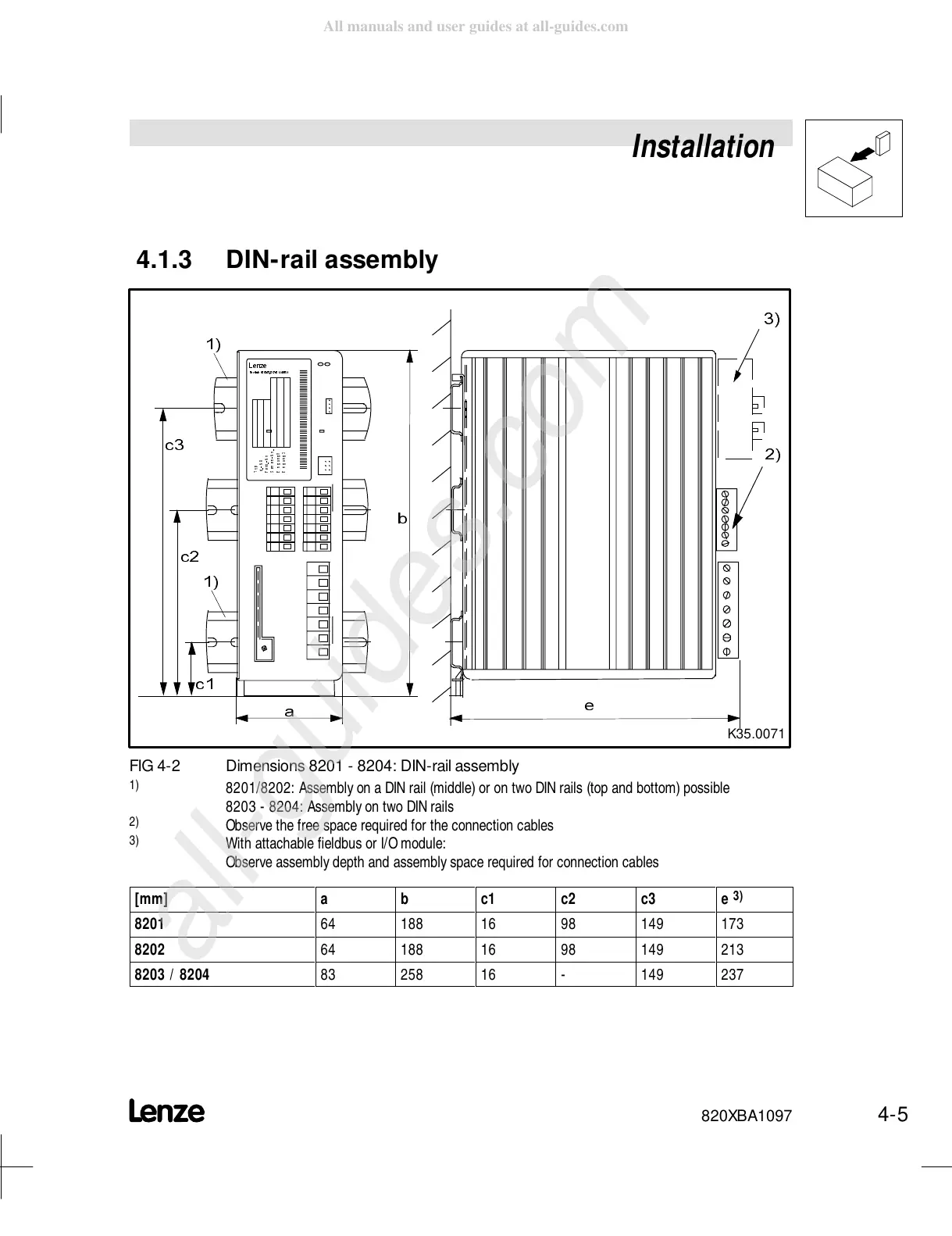 FIG 4-2 Dimensions 8201 - 8204: DIN-rail assembly