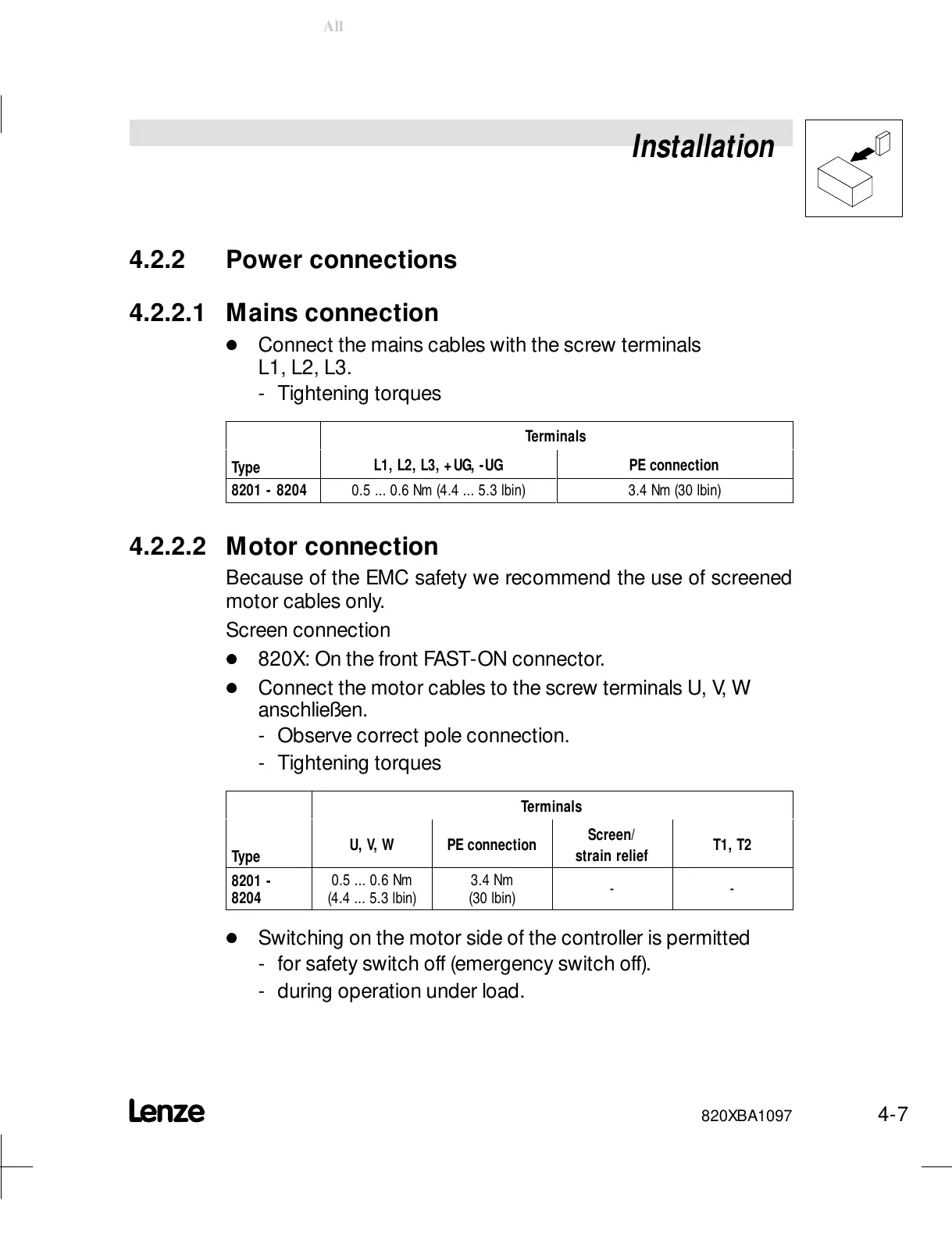 8201 - 8204 0.5 ... 0.6 Nm (4.4 ... 5.3 lbin) 3.4 Nm (30 lbin)