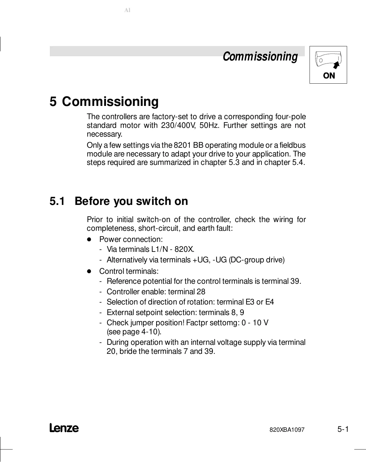 - Alternatively via terminals +UG, -UG (DC-group drive)