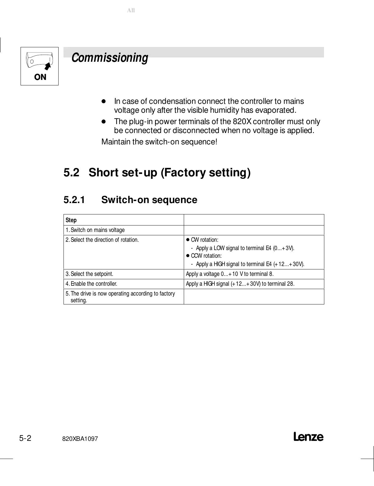5.2.1 Switch-on sequence