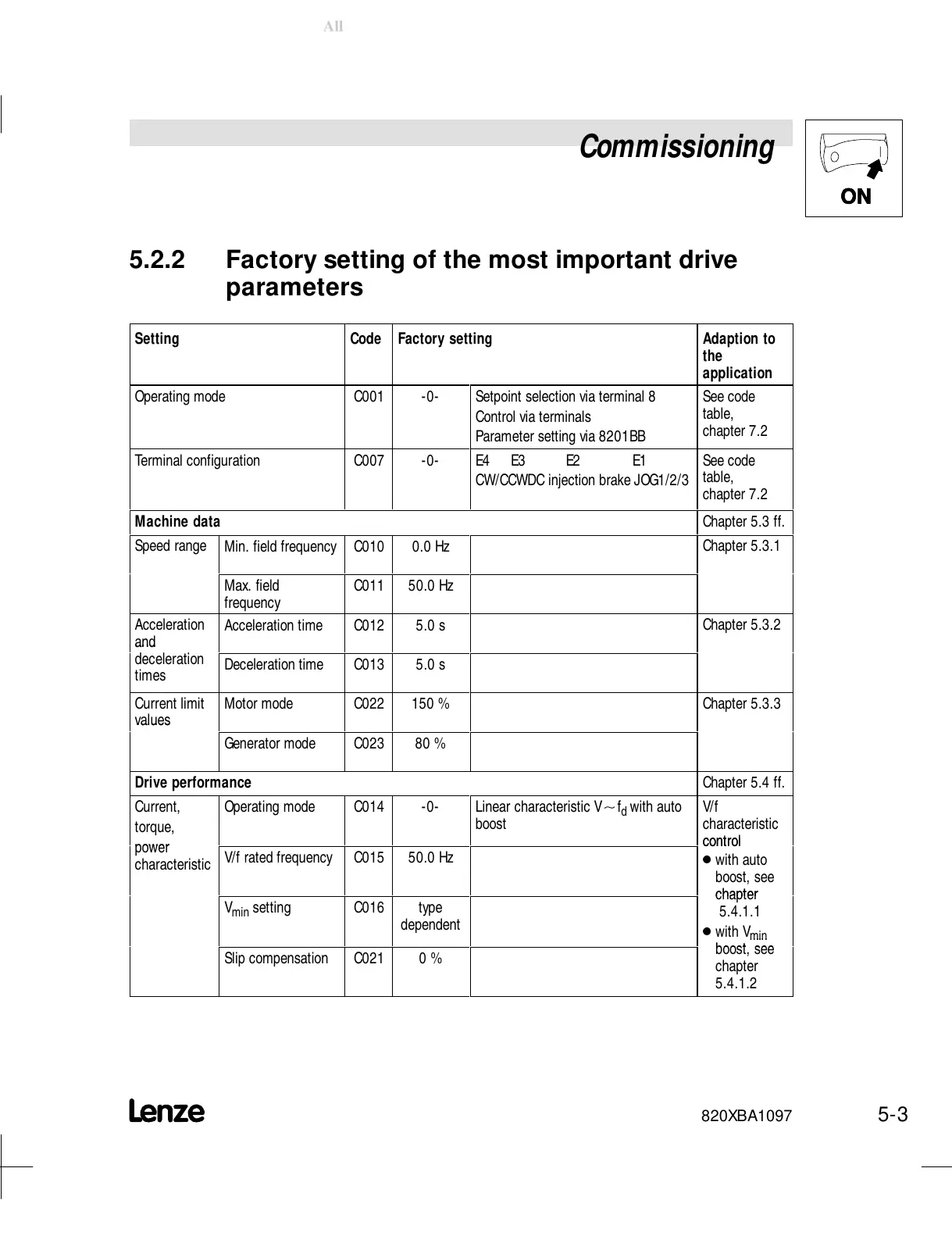 Operating mode C001 -0- Setpoint selection via terminal 8