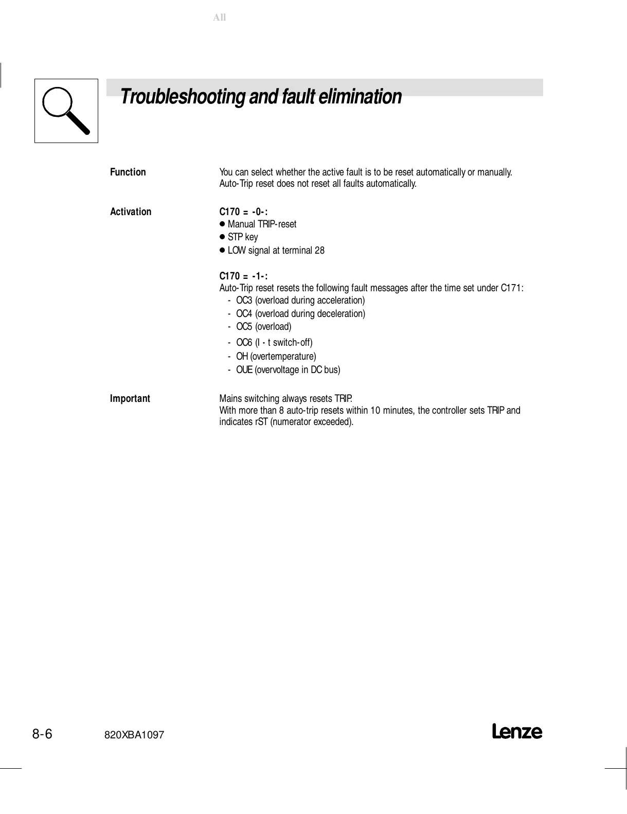 Auto-TripresetresetsthefollowingfaultmessagesafterthetimesetunderC171:
