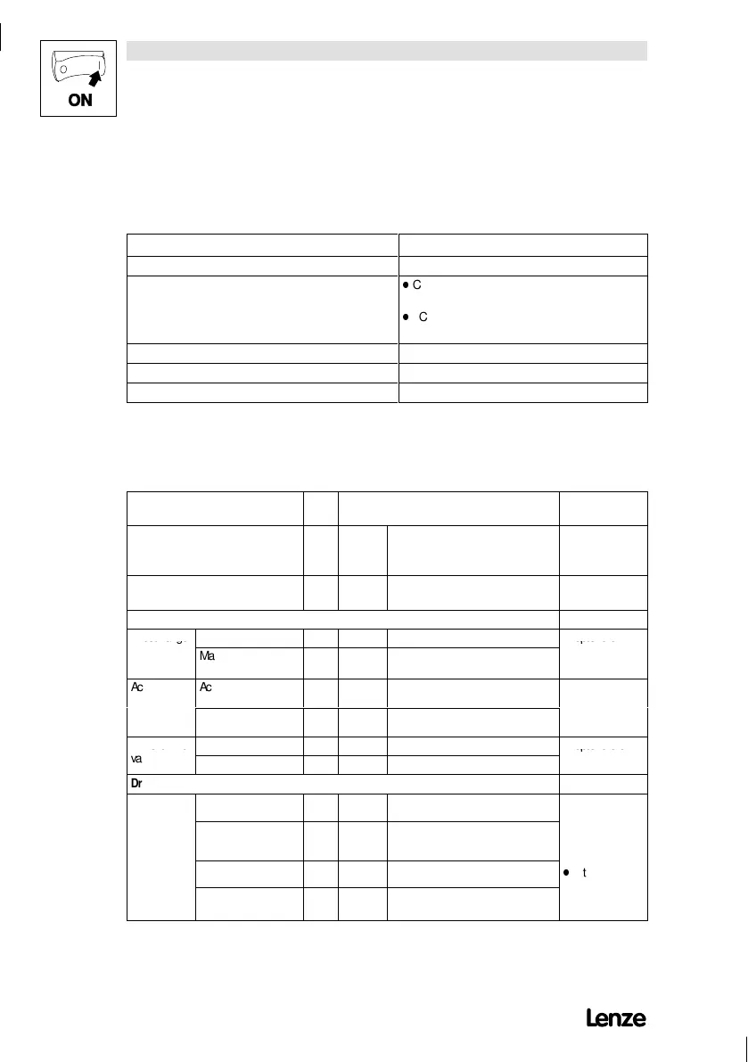 5.2.2 Factory setting of the most important drive