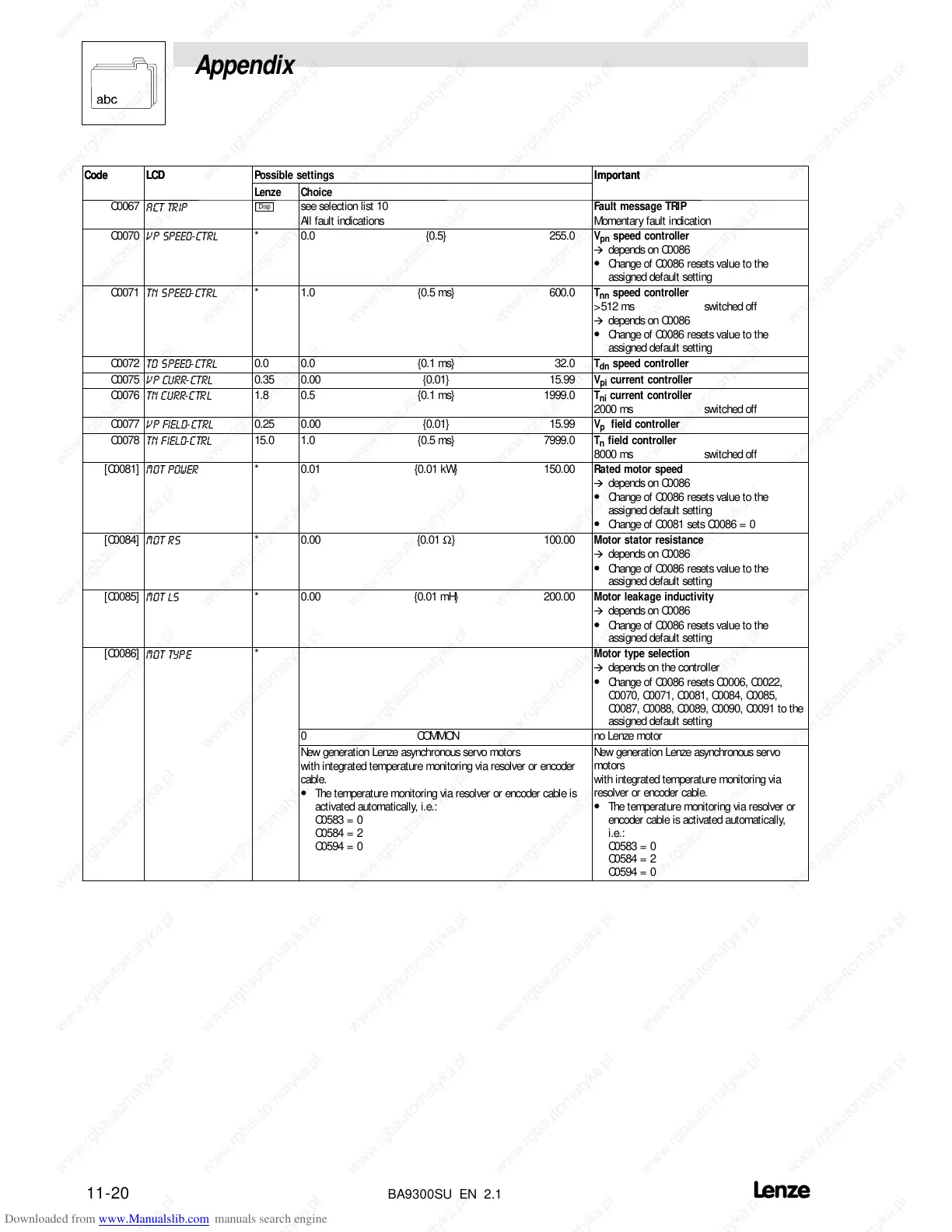 0 COMMON no Lenze motor