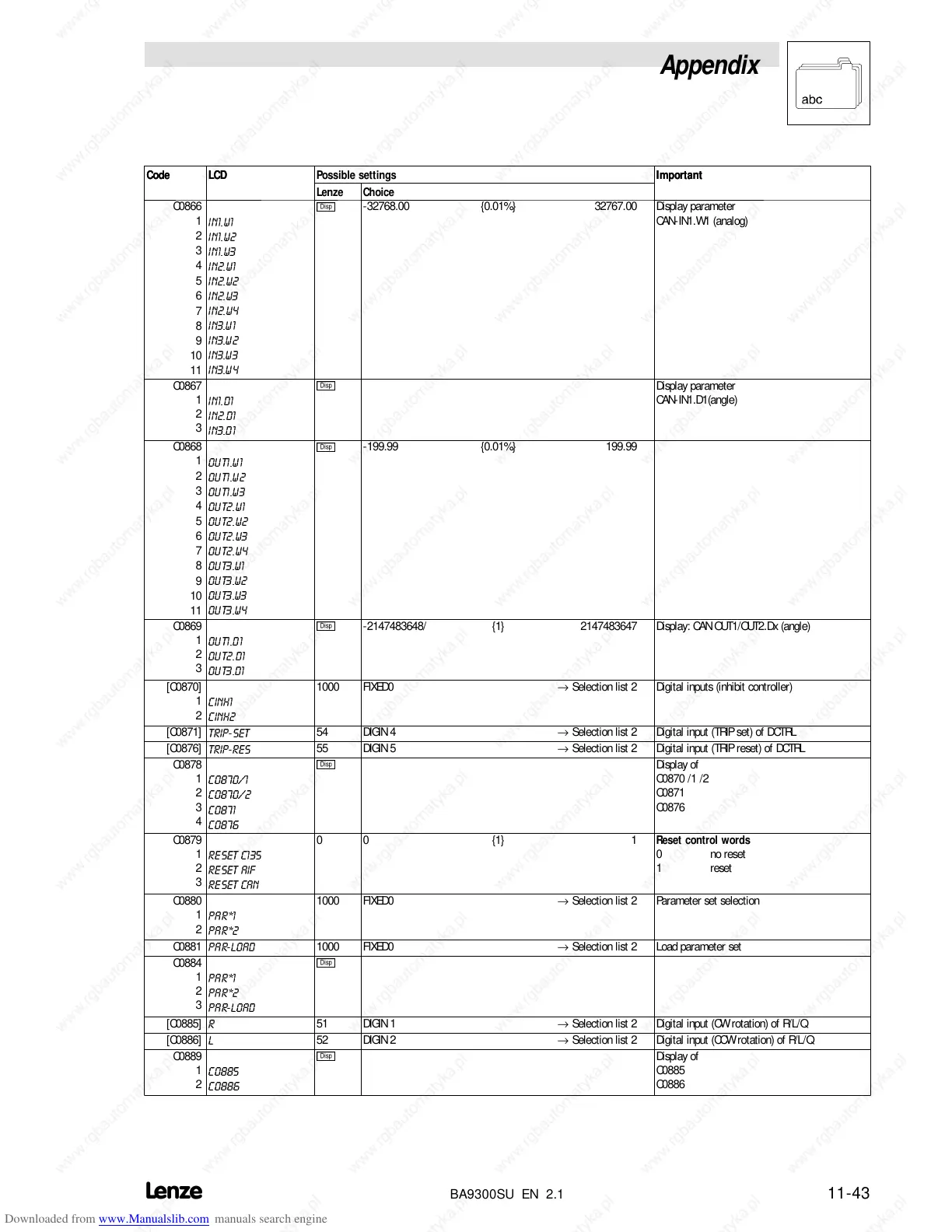 1000 FIXED0 → Selection list 2 Digital inputs (inhibit controller)