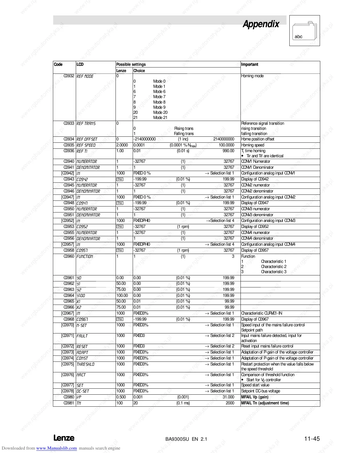 1000 FIXED0 → Selection list 2 Reset input mains failure control