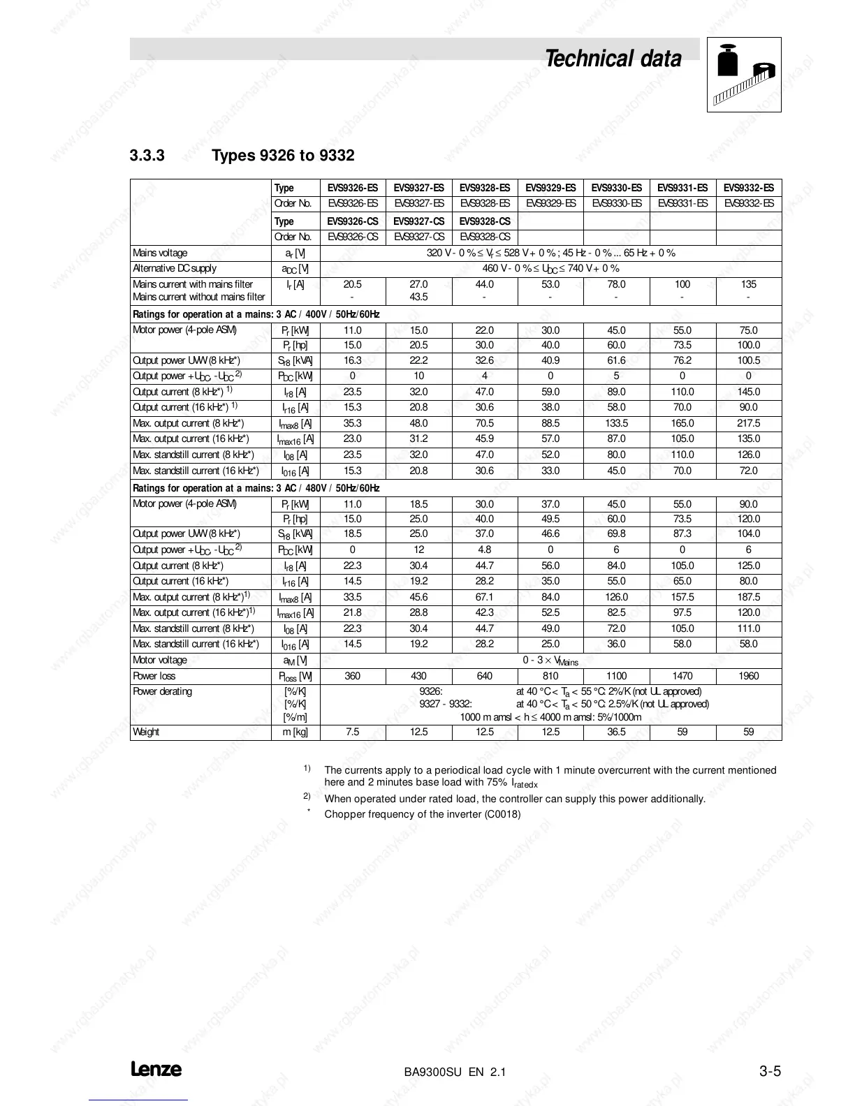 Ratings for operation at a mains: 3 AC / 400V / 50Hz/60Hz