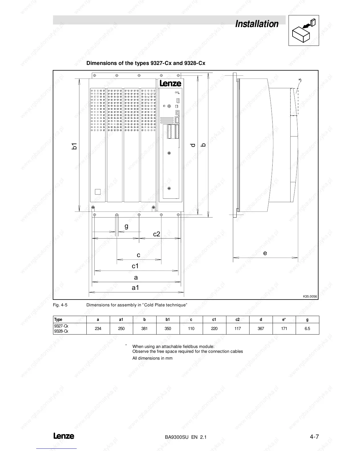 Fig. 4-5 Dimensions for assembly in ”Cold Plate technique”