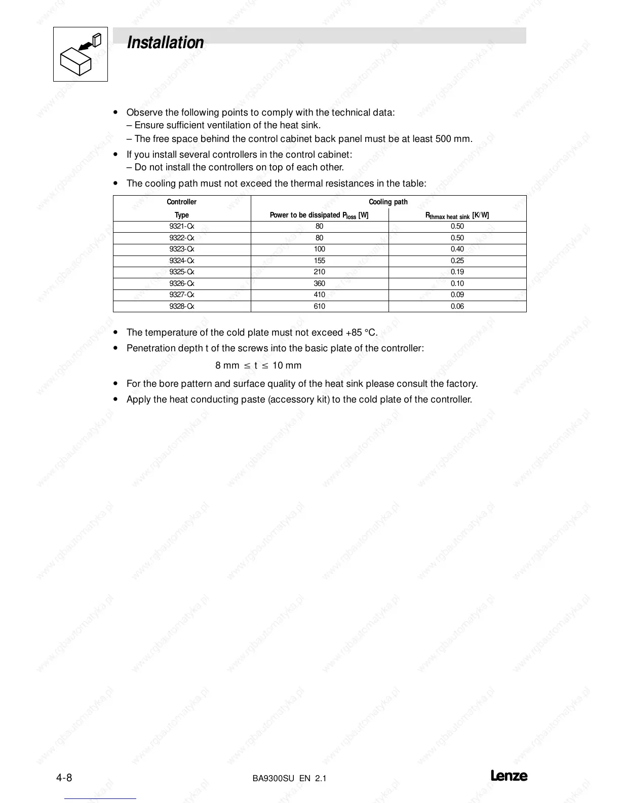 • Apply the heat conducting paste (accessory kit) to the cold plate of the controller.