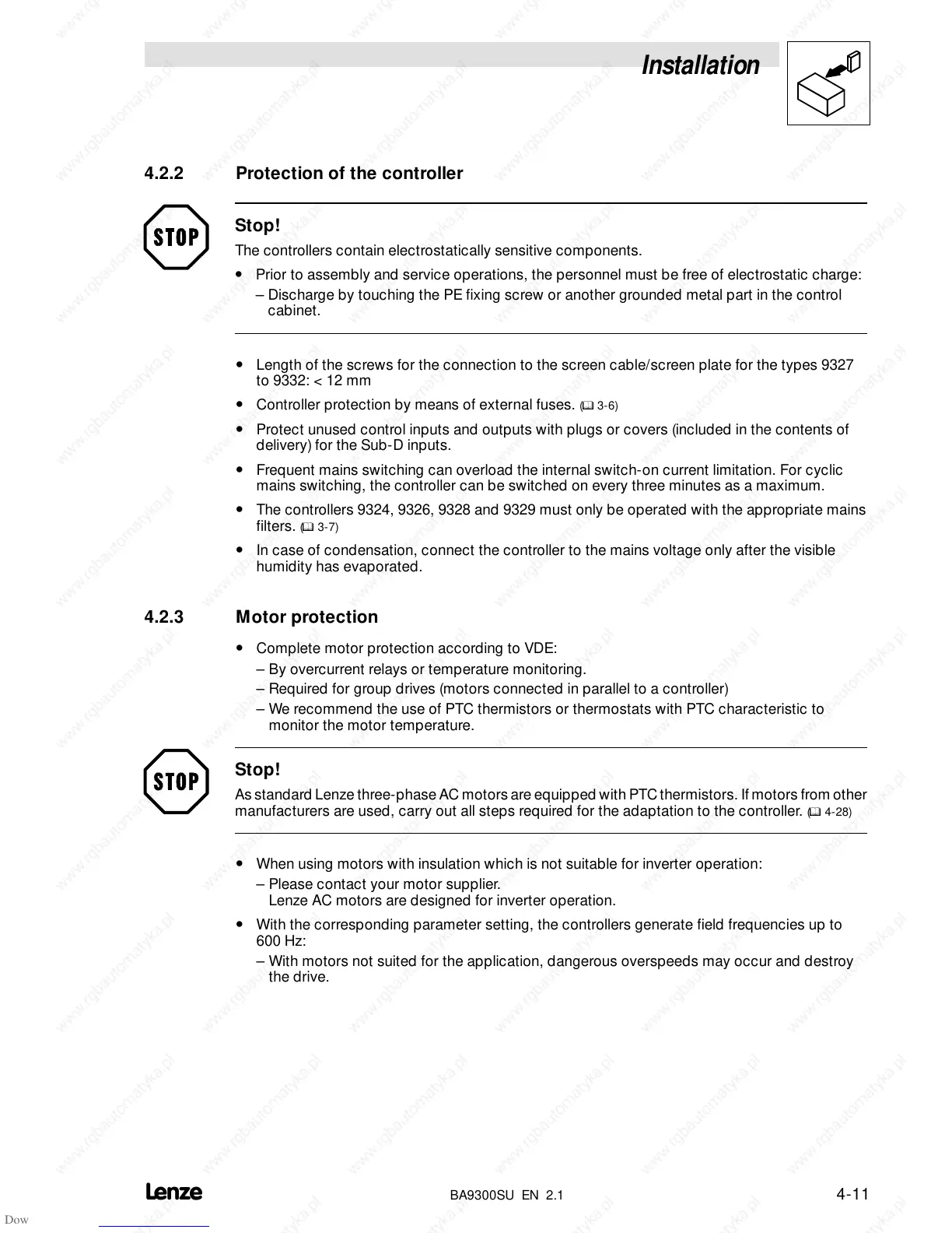 Lenze EVS9322-ES - Protection of the Controller; Motor Protection