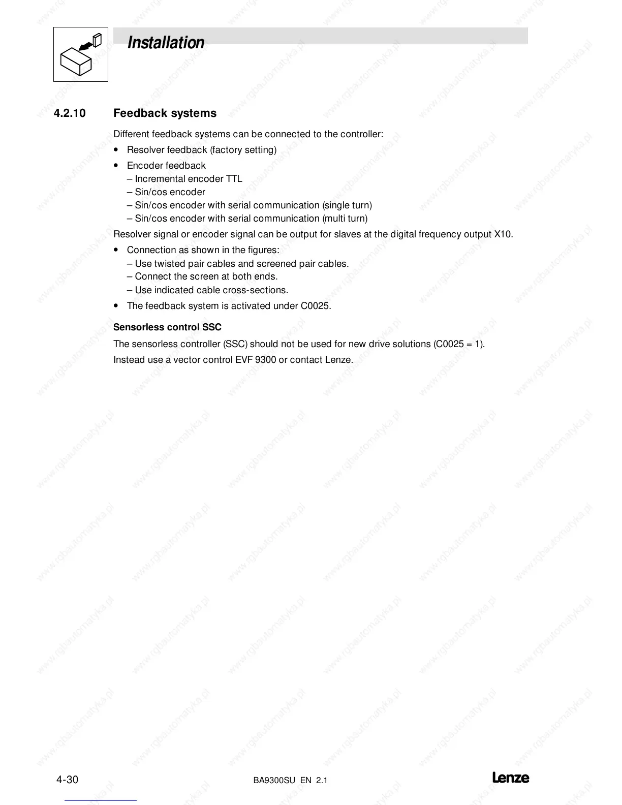 The sensorless controller (SSC) should not be used for new drive solutions (C0025 = 1).
