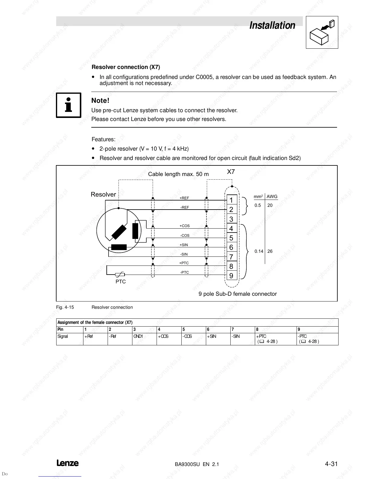 Resolver and resolver cable are monitored for open circuit (fault indication Sd2)