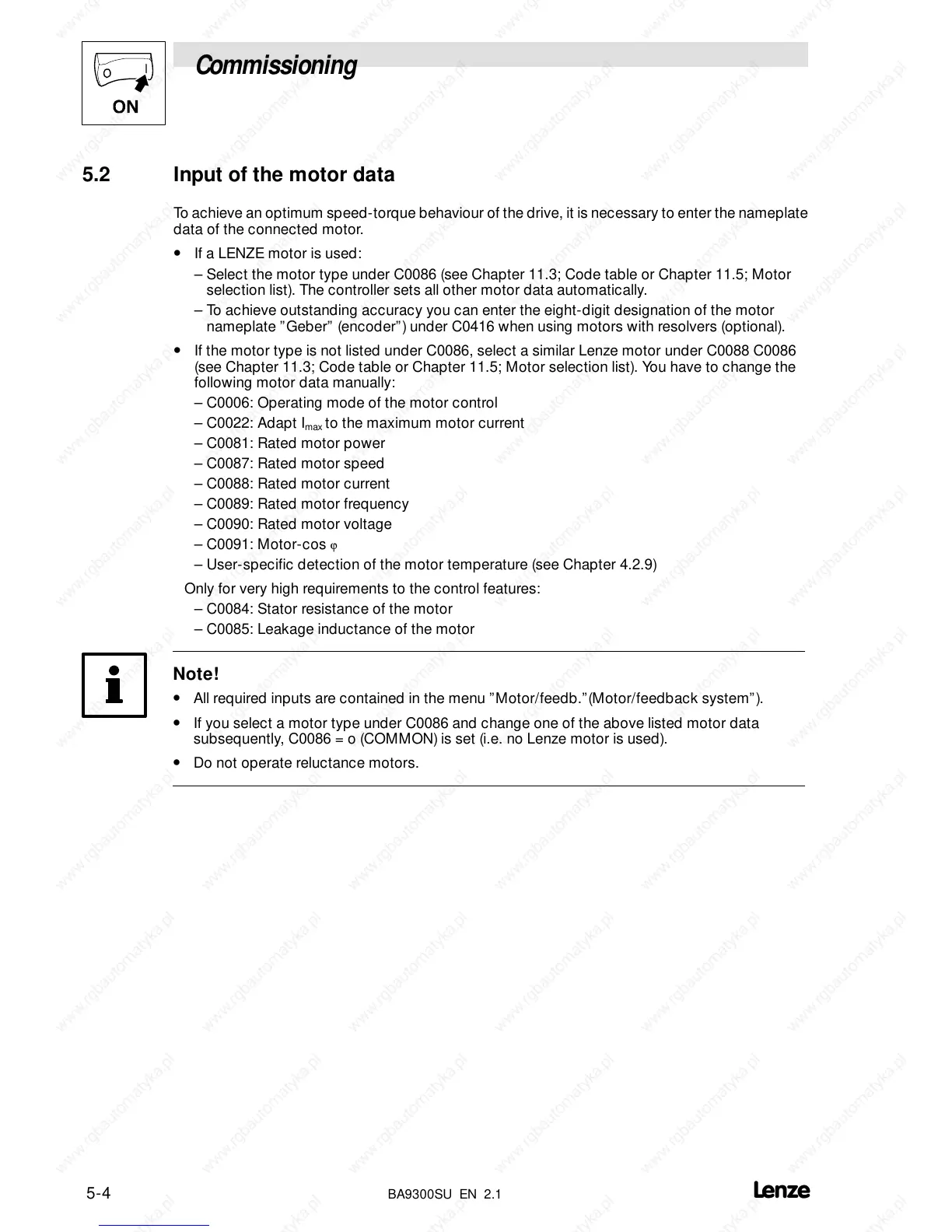 Lenze EVS9322-ES - 5.2 Input of the Motor Data