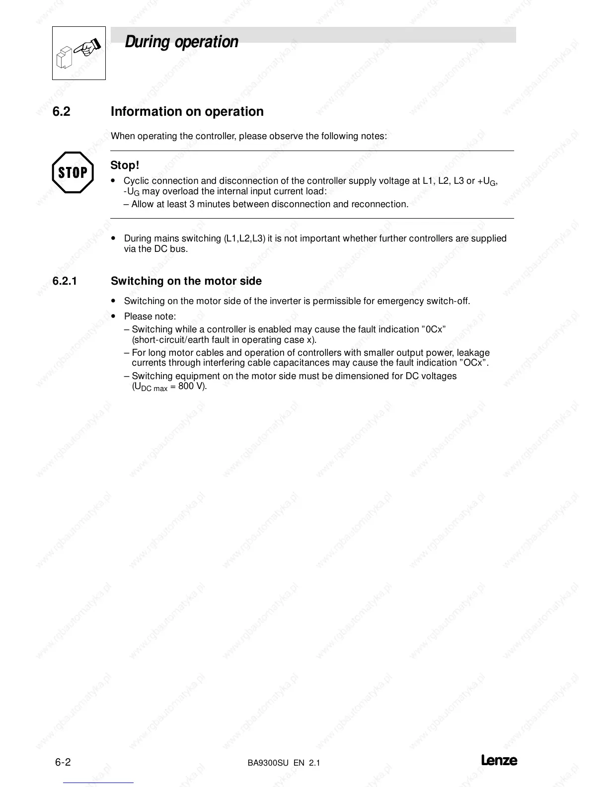 Lenze EVS9322-ES - 6.2 Information on Operation