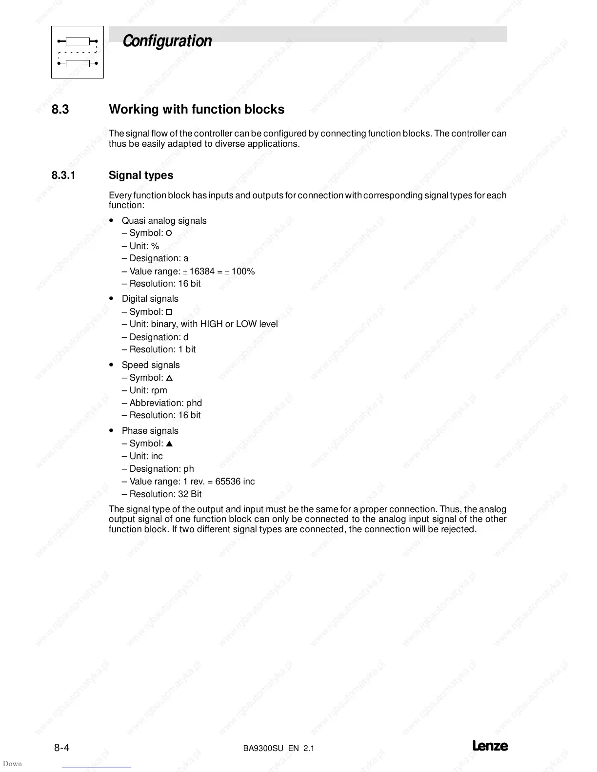 The signal flow of the controller can be configured by connecting function blocks. The controller can