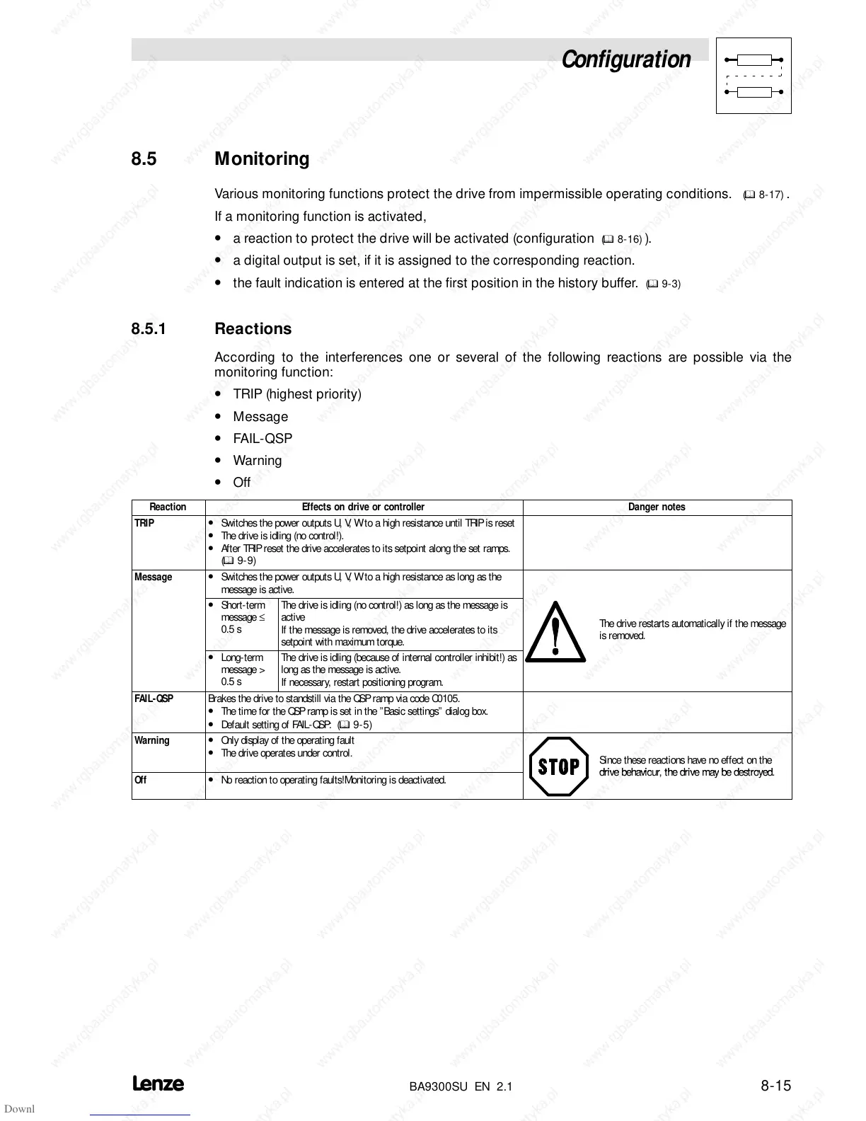 Various monitoring functions protect the drive from impermissible operating conditions. (
