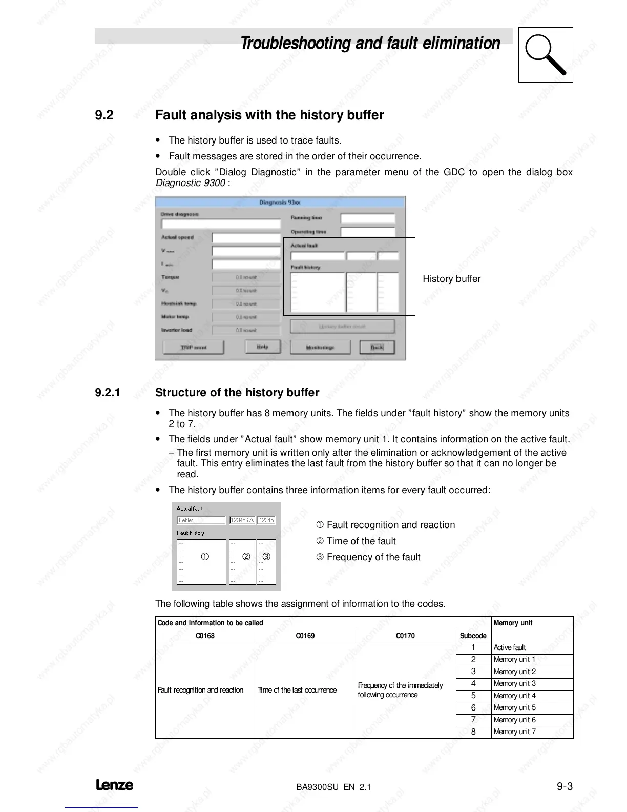 • The history buffer has 8 memory units. The fields under ”fault history” show the memory units