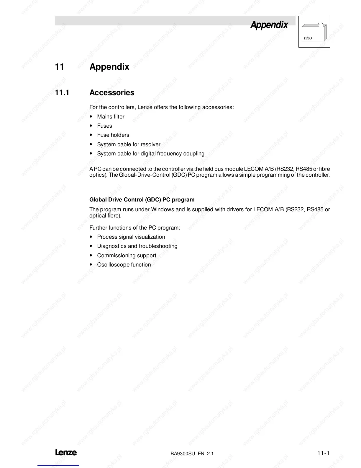 For the controllers, Lenze offers the following accessories: