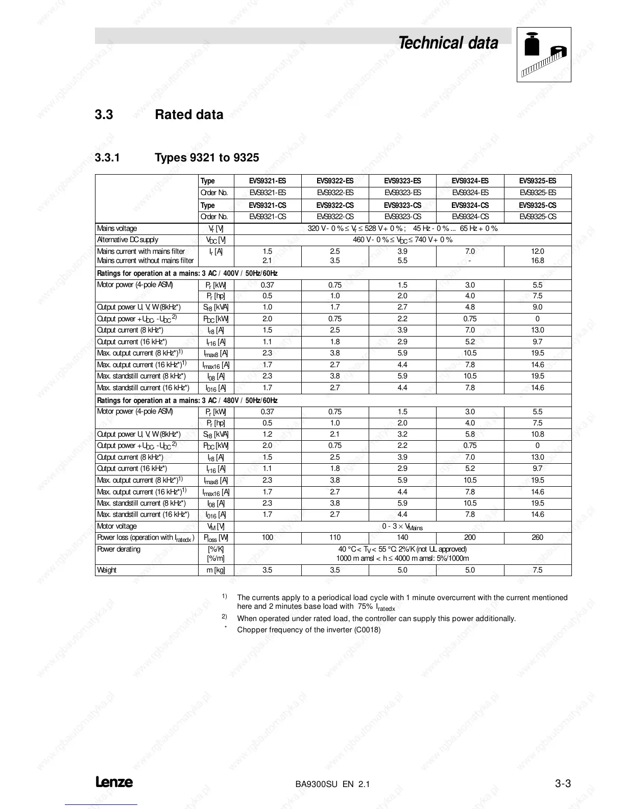 Ratings for operation at a mains: 3 AC / 400V / 50Hz/60Hz