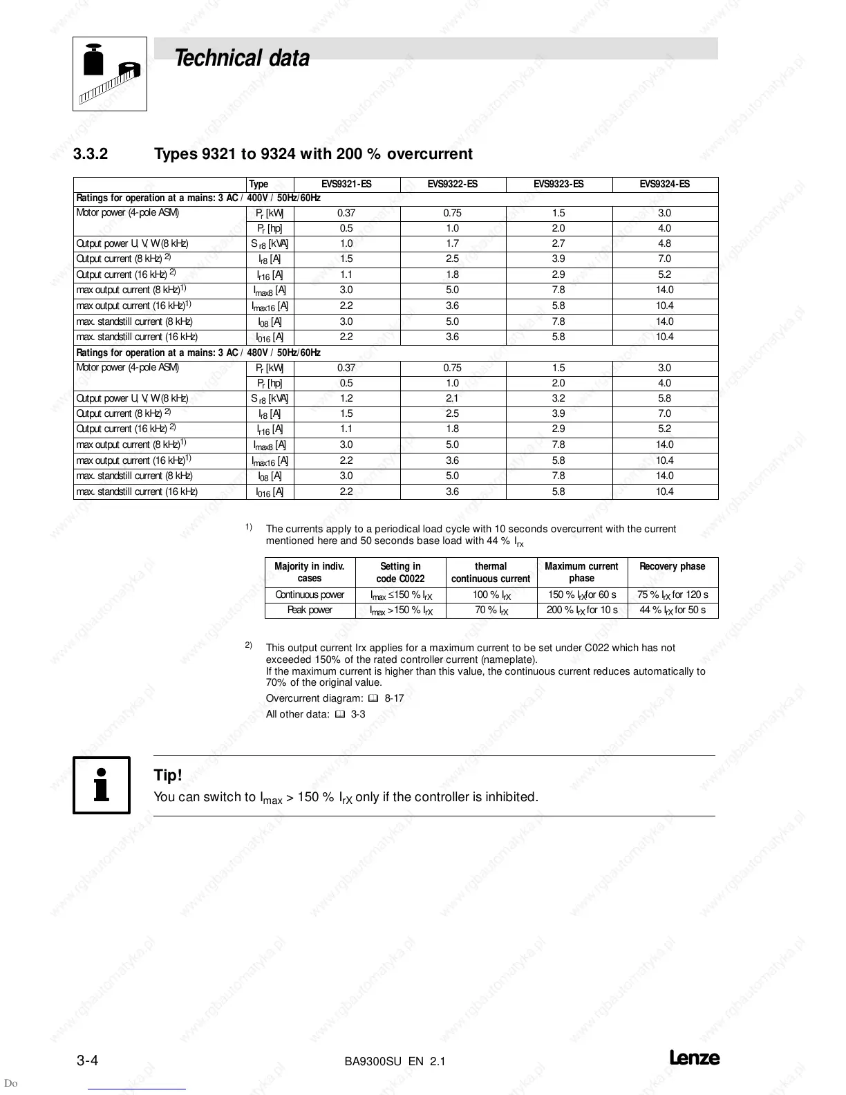 Ratings for operation at a mains: 3 AC / 400V / 50Hz/60Hz