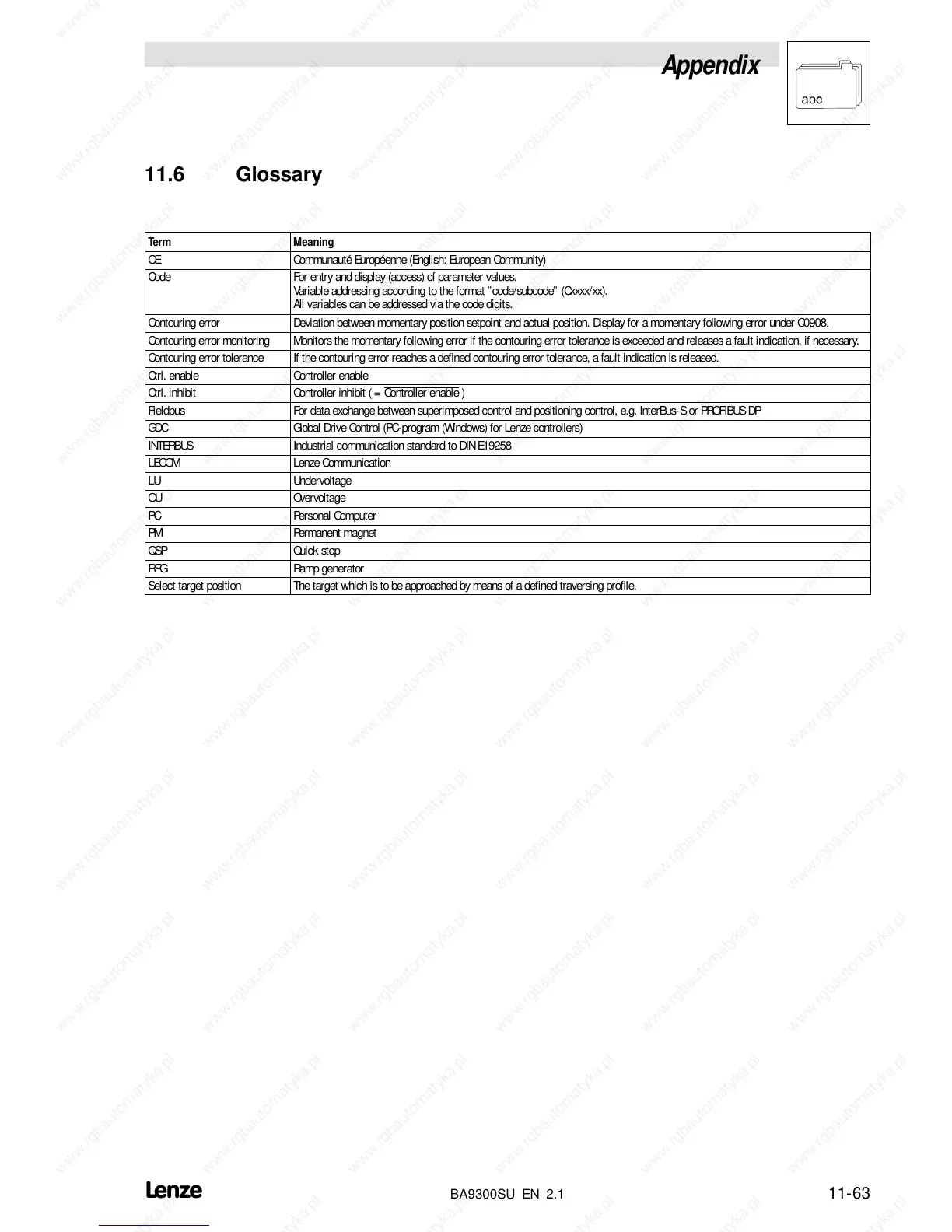 Lenze EVS9323-ES - Glossary
