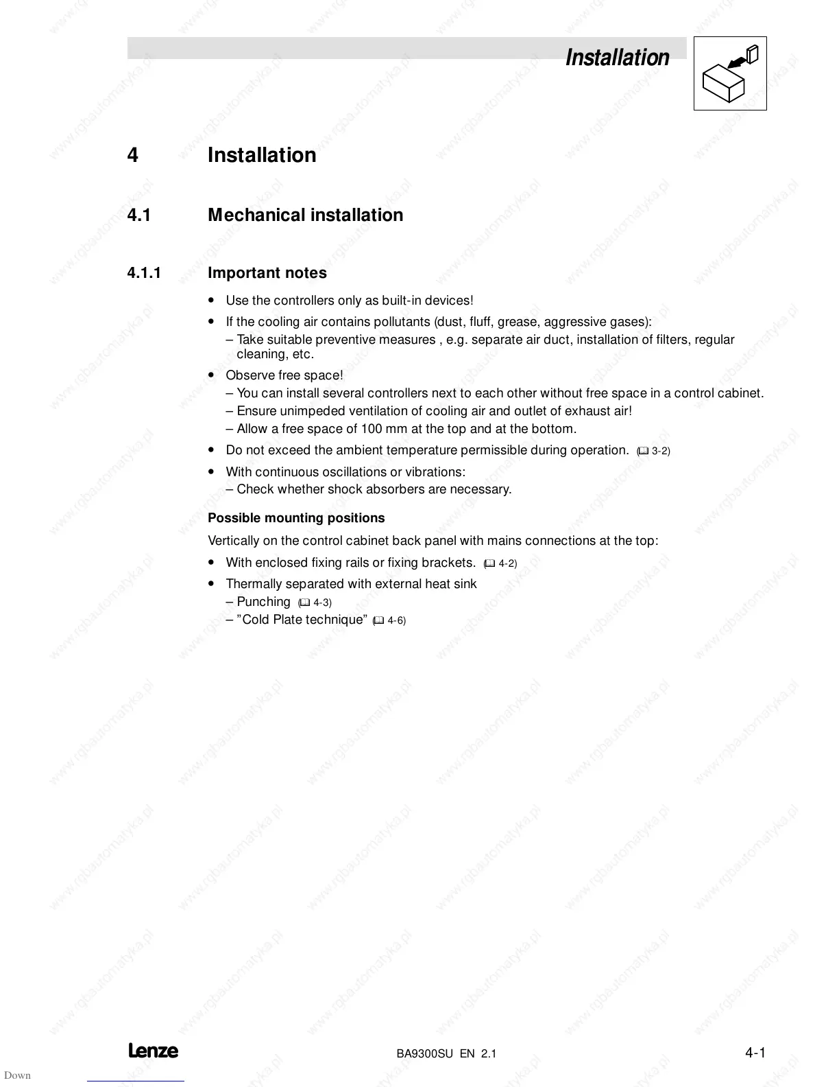 • If the cooling air contains pollutants (dust, fluff, grease, aggressive gases):