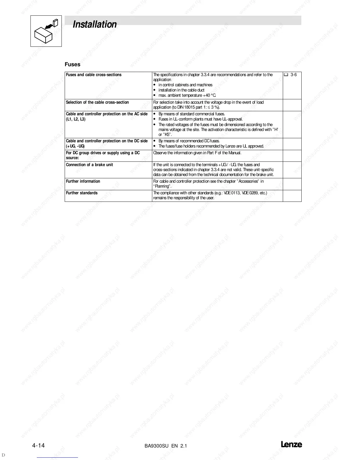 Fuses and cable cross-sections The specifications in chapter 3.3.4 are recommendations and refer to the
