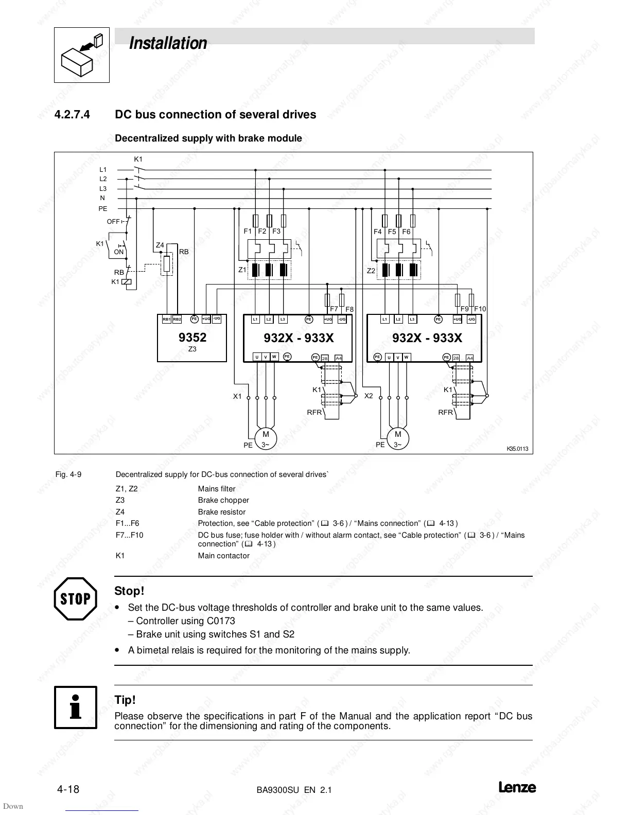 4.2.7.4 DC bus connection of several drives