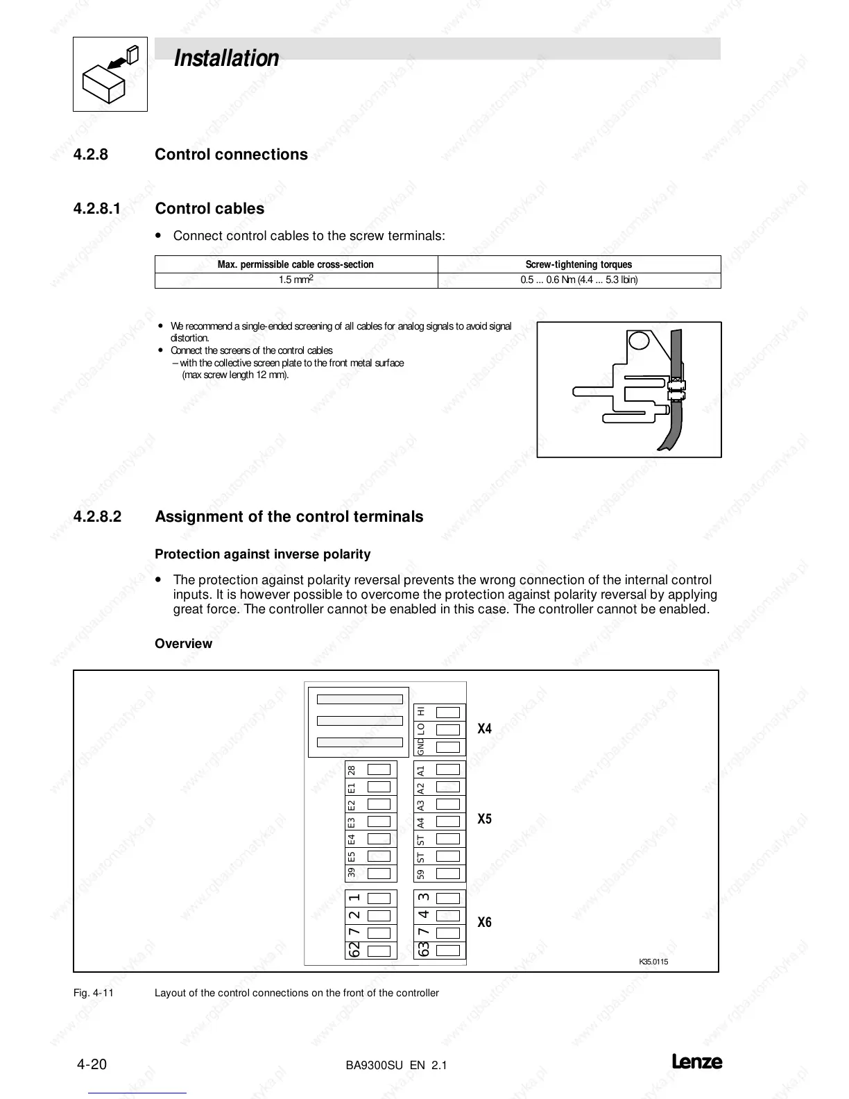 Lenze EVS9323-ES - Control Connections; Control Cables; Assignment of the Control Terminals