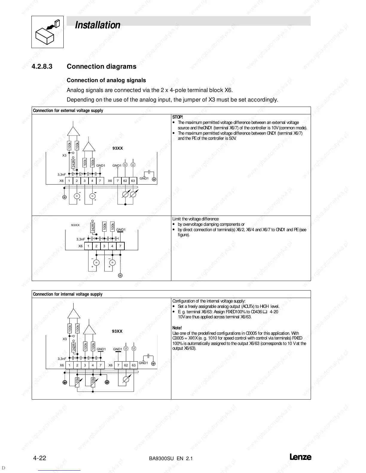 source and theGND1 (terminal X6/7) of the controller is 10V (common mode).
