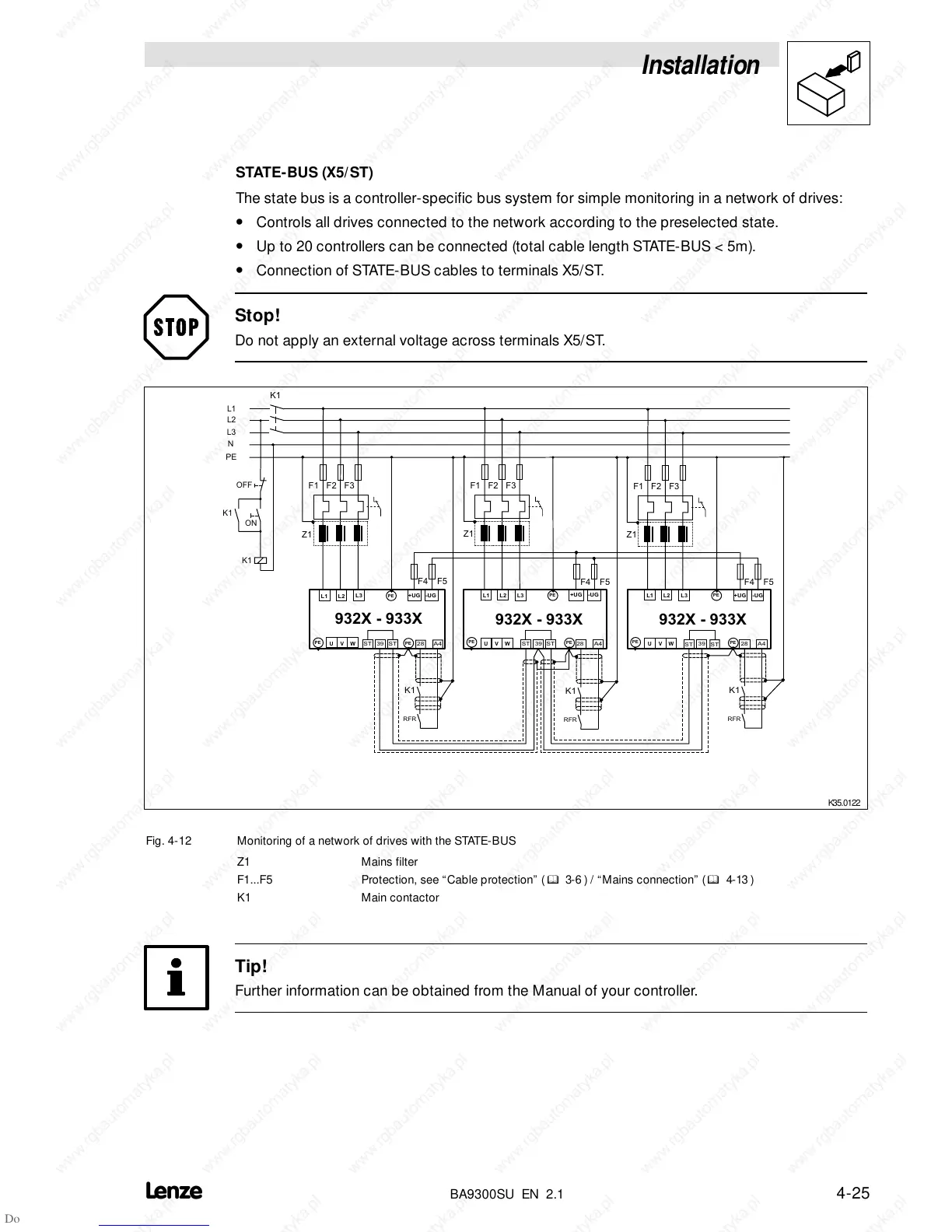 • Connection of STATE-BUS cables to terminals X5/ST.