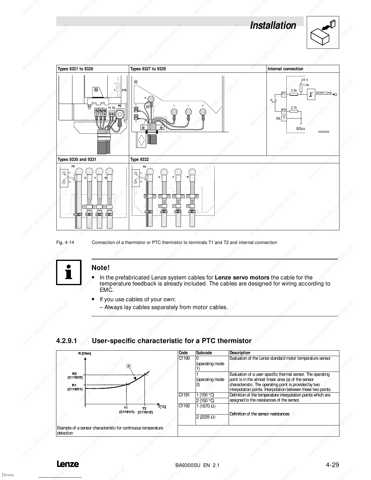 Lenze EVS9323-ES - User-Specific Characteristic for a PTC Thermistor