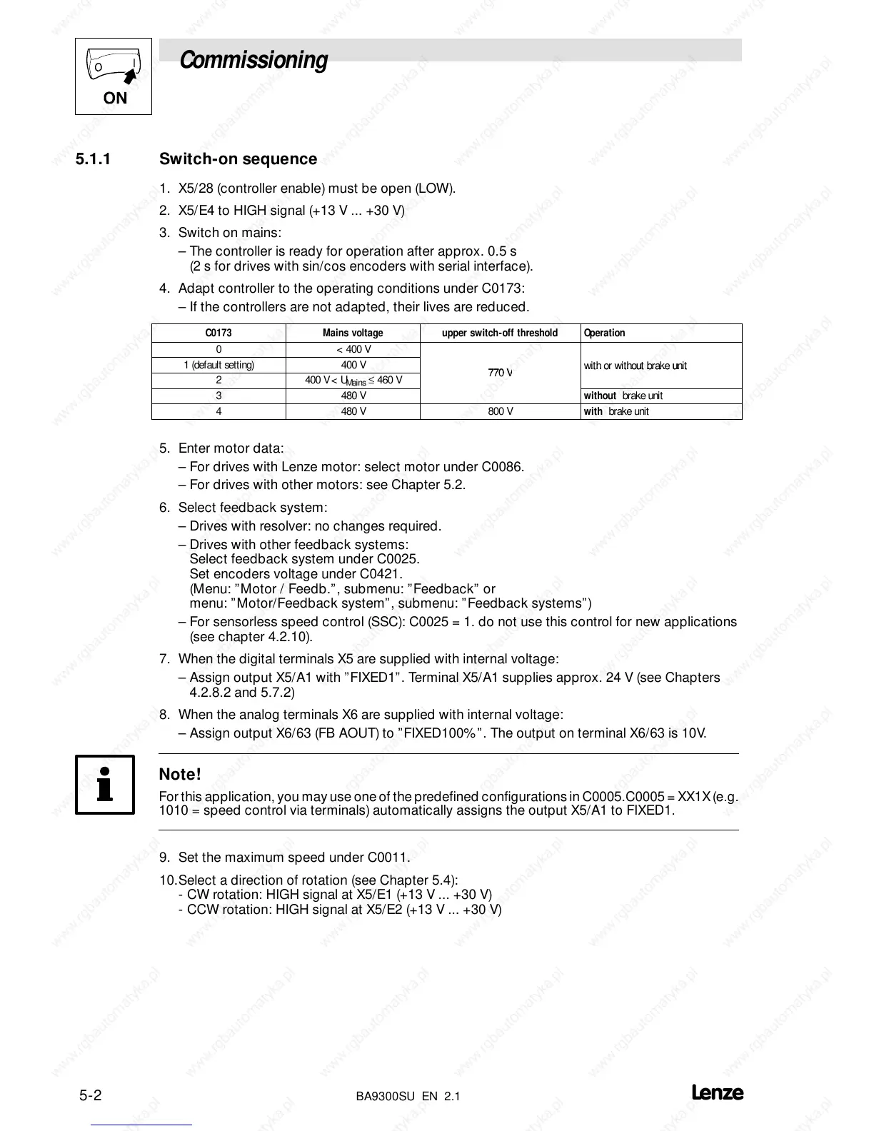 – For sensorless speed control (SSC): C0025 = 1. do not use this control for new applications