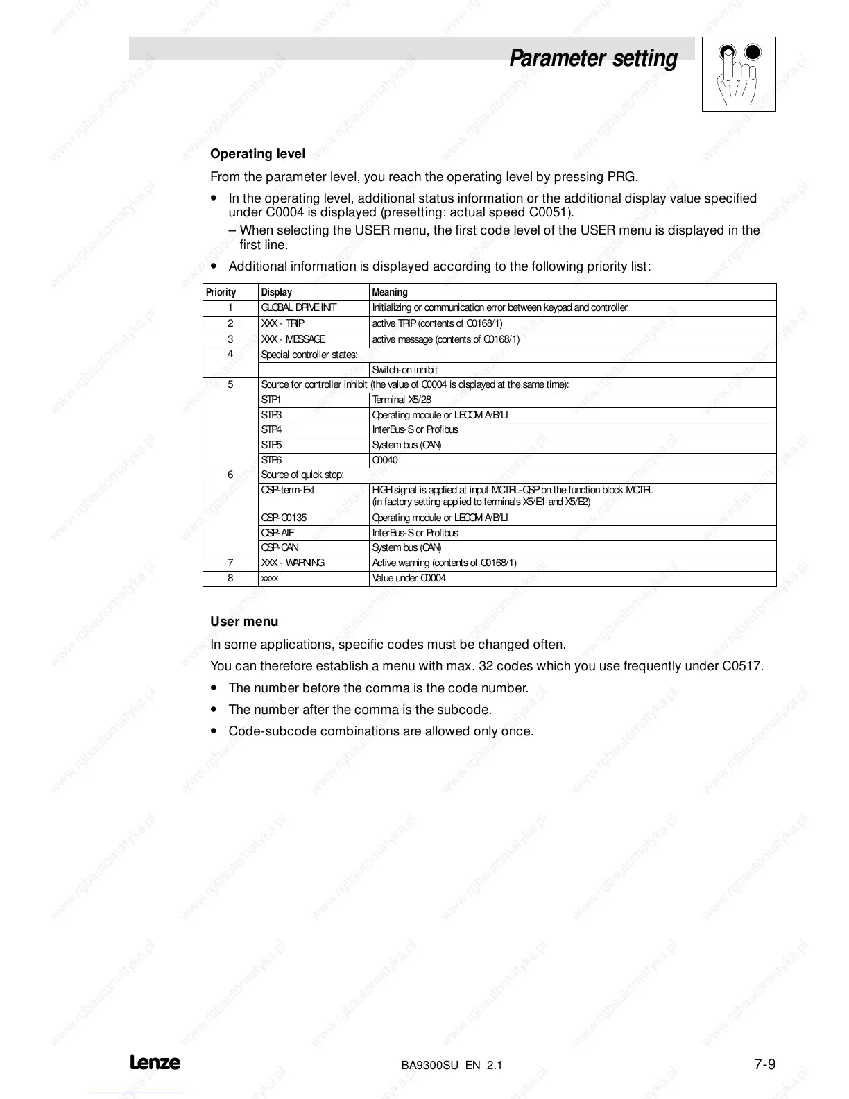 Source for controller inhibit (the value of C0004 is displayed at the same time):
